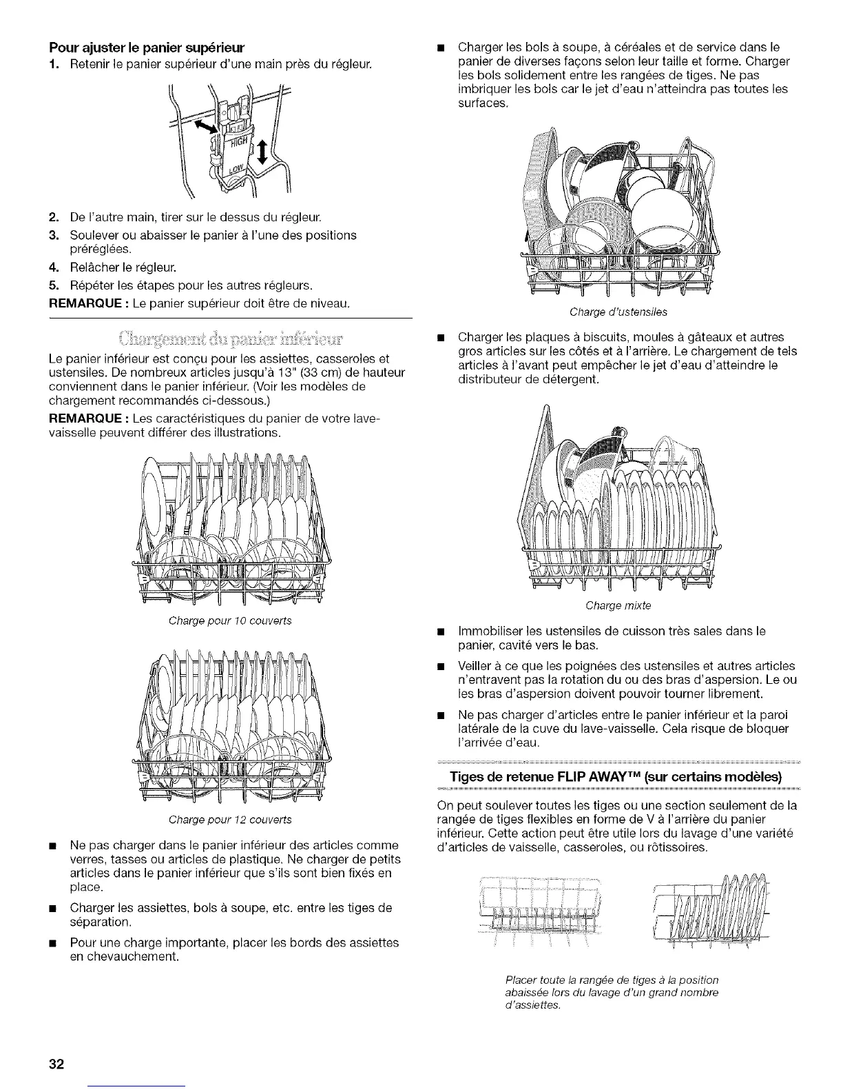 REMARQUE : Le panier superieur doit _tre de niveau.