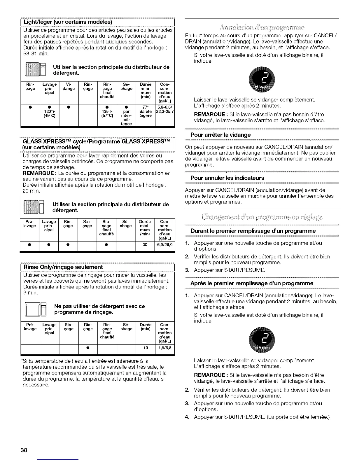 vidange, le lave-vaisselle s'arr_te et I'affichage s'efface.