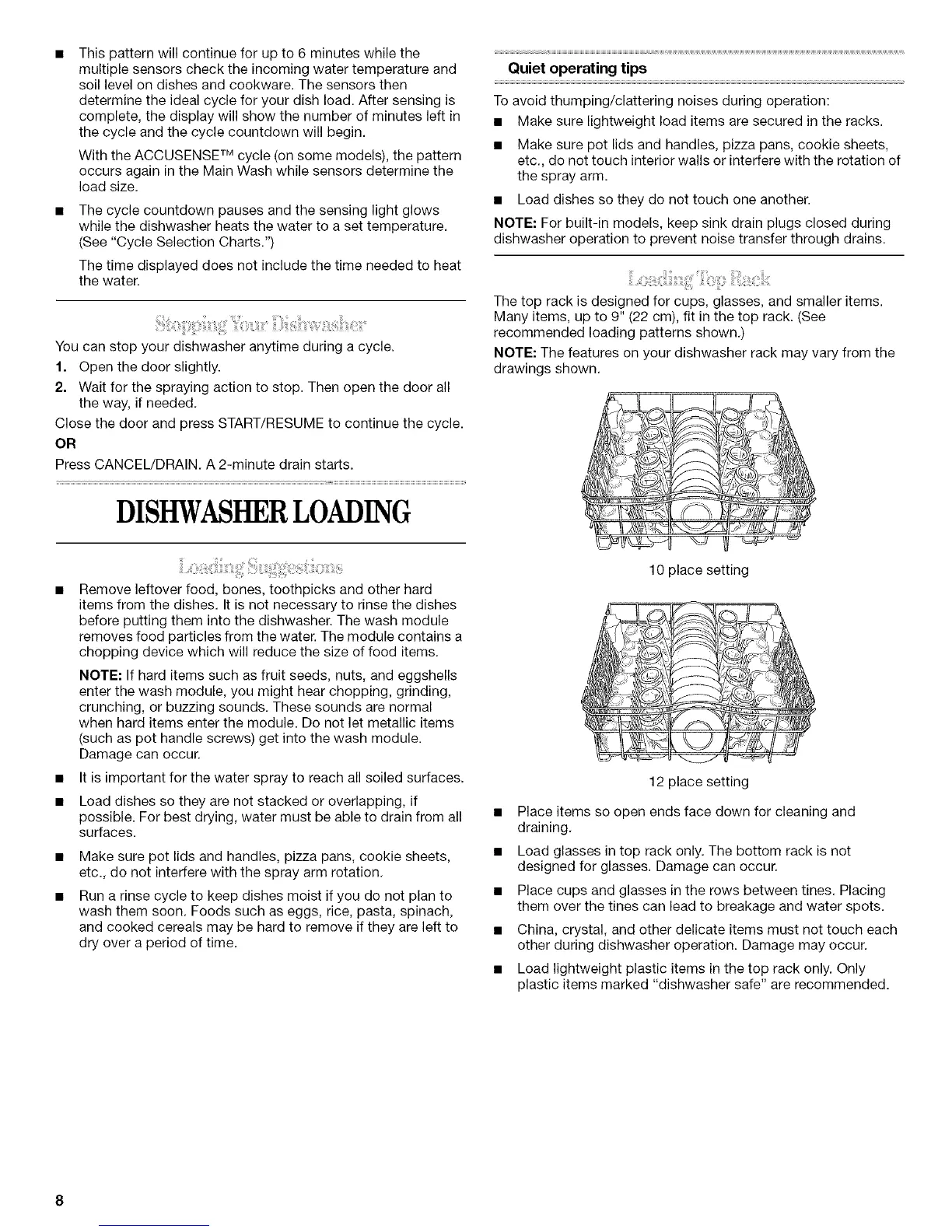 • Load dishes so they do not touch one another.