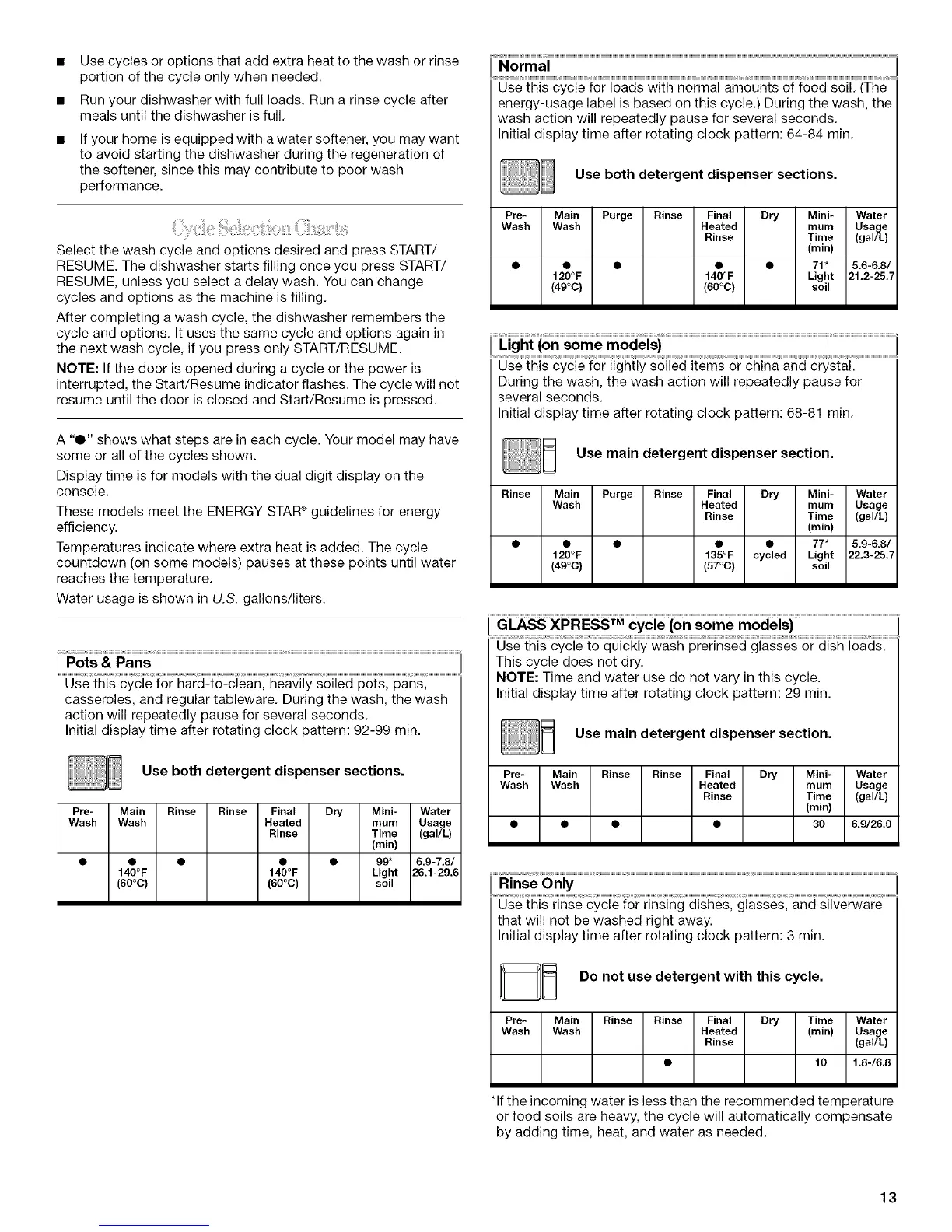 or food soils are heavy, the cycle will automatically compensate