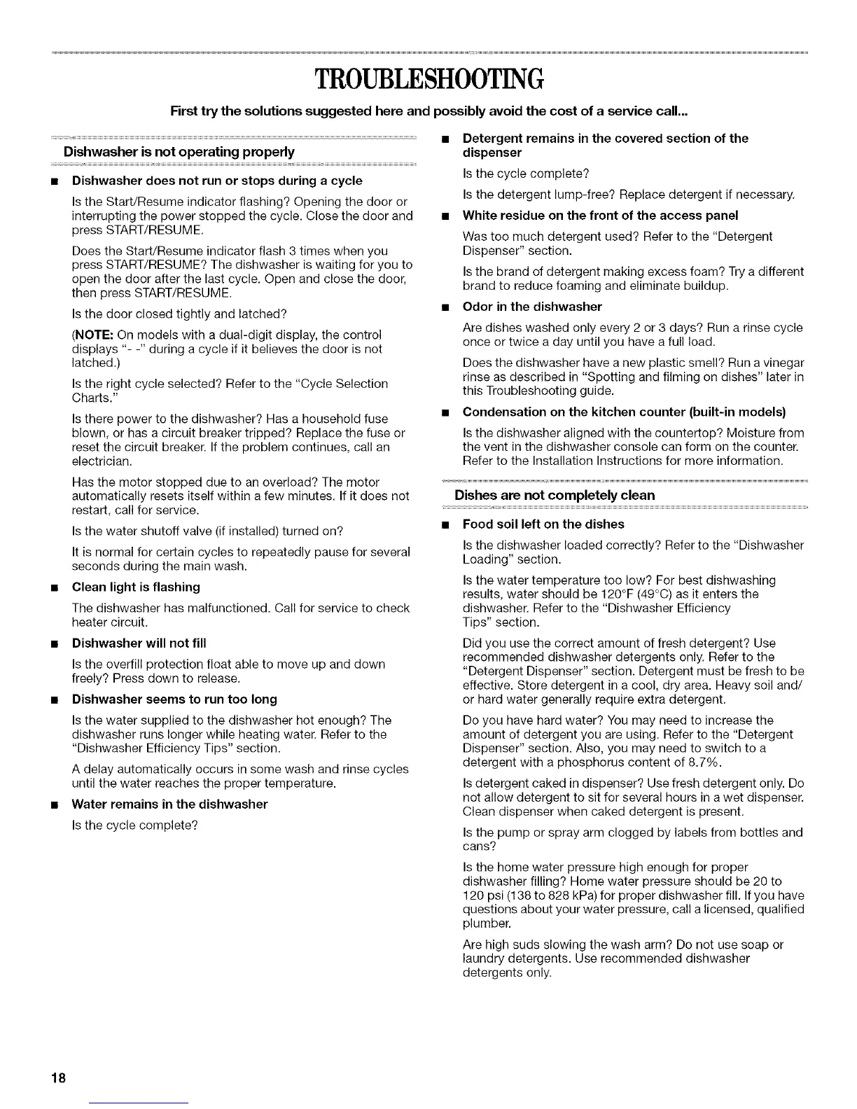 dishwasher. Refer to the "Dishwasher Efficiency