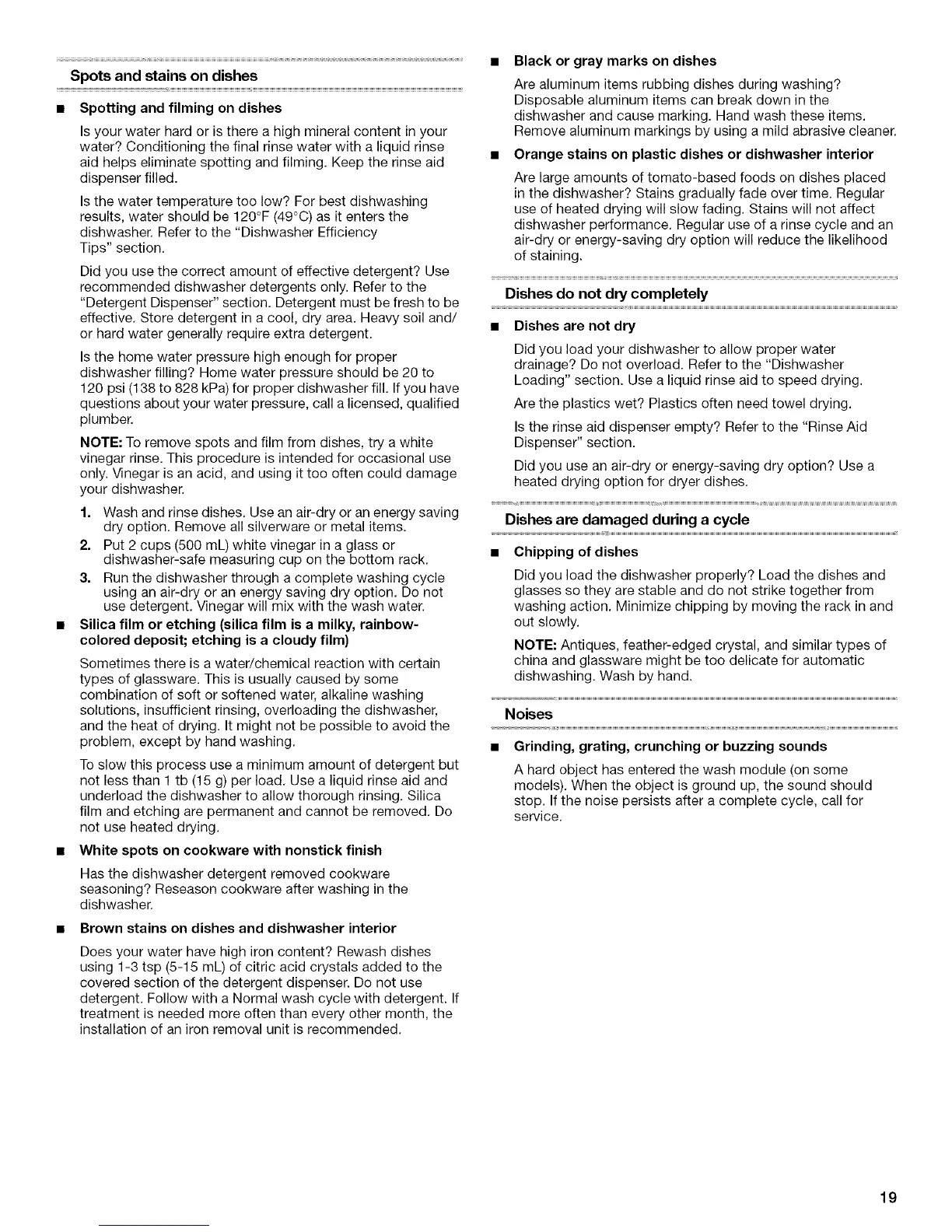 NOTE: To remove spots and film from dishes, try a white