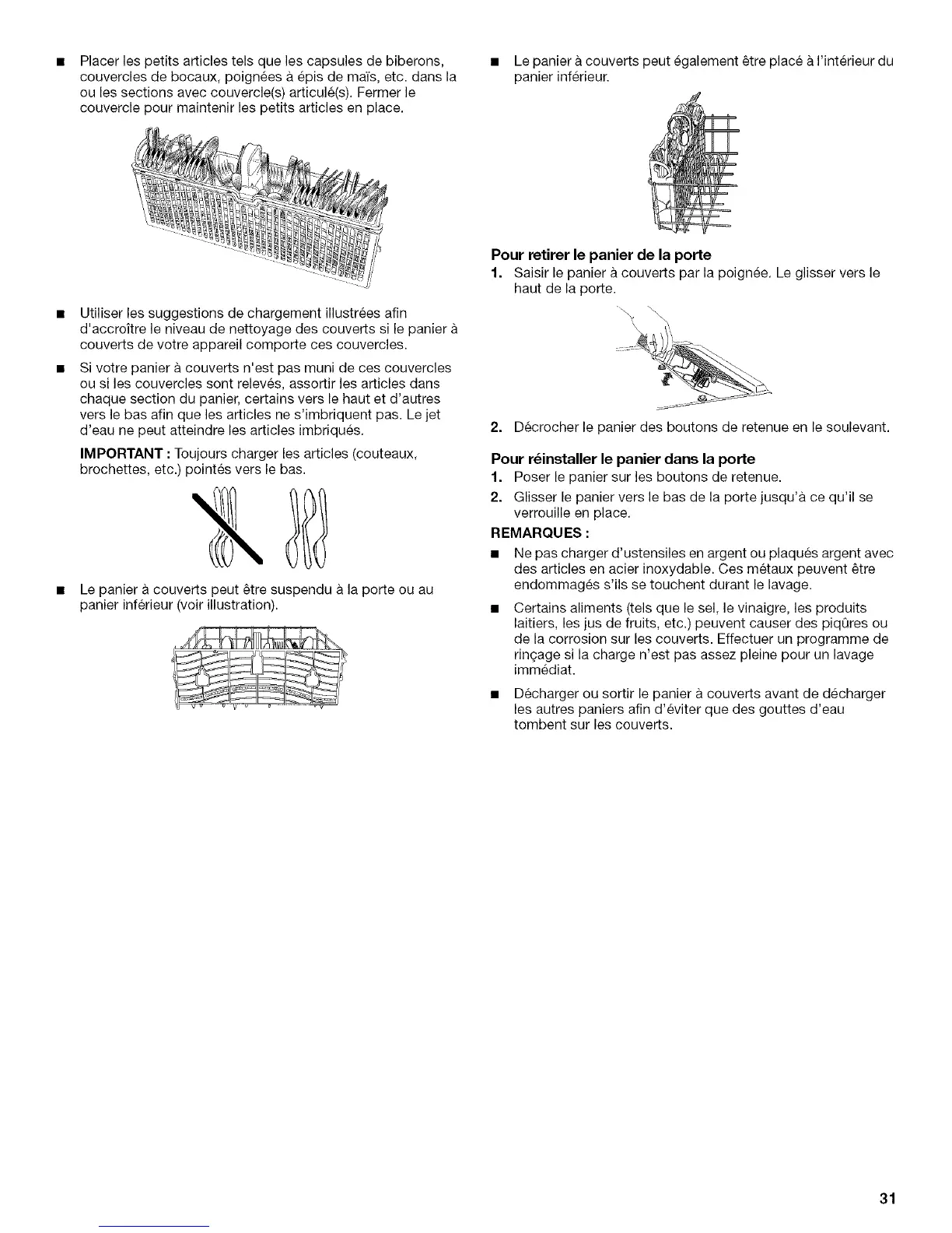 • • Le panier& couverts peut egalement _tre place & I'interieur du