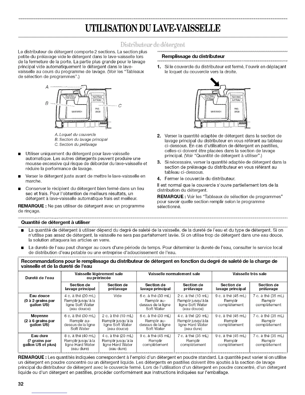 principal. (Voir "Quantite de detergent a utiliser".)