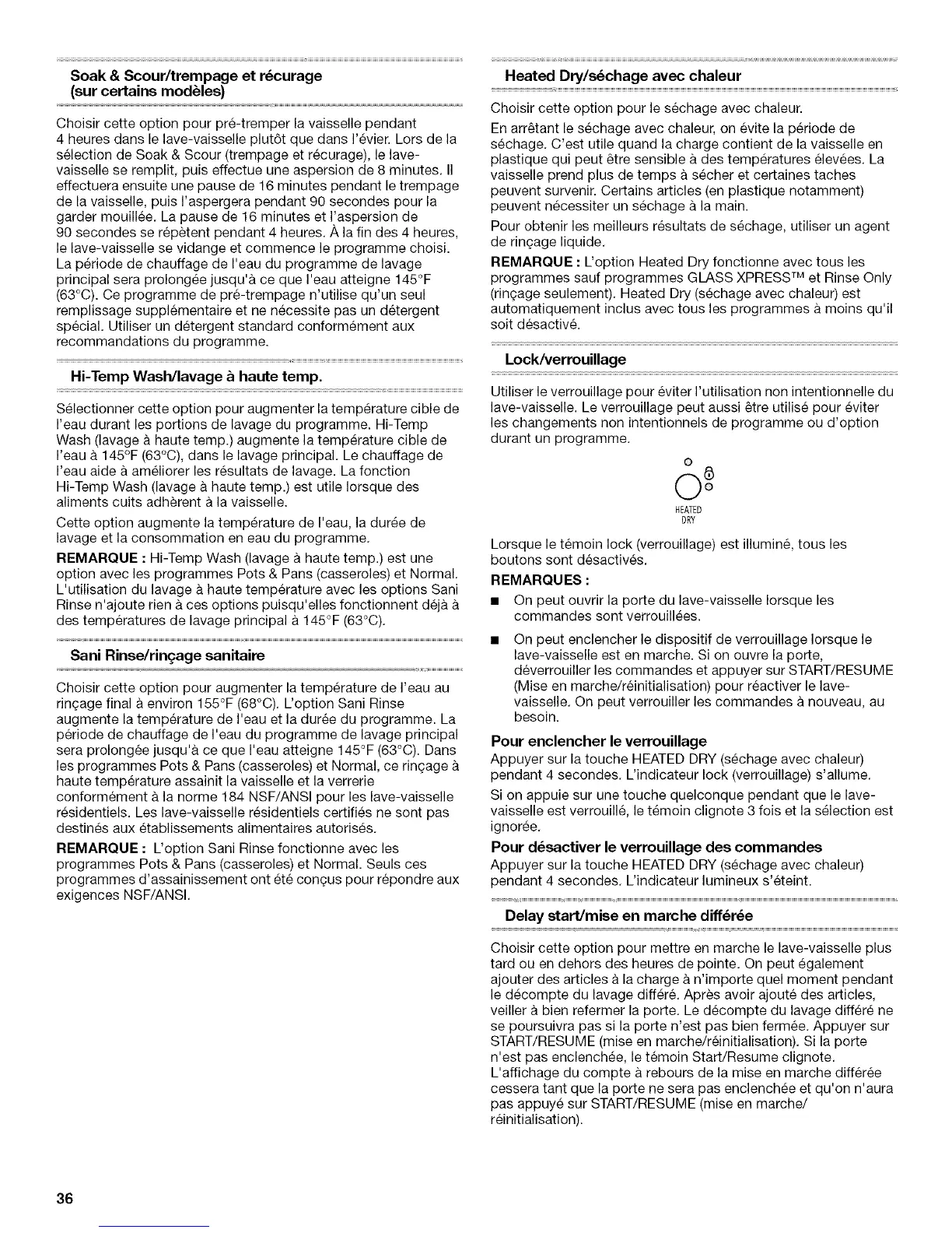 (rin(;age seulement). Heated Dry (sechage avec chaleur) est