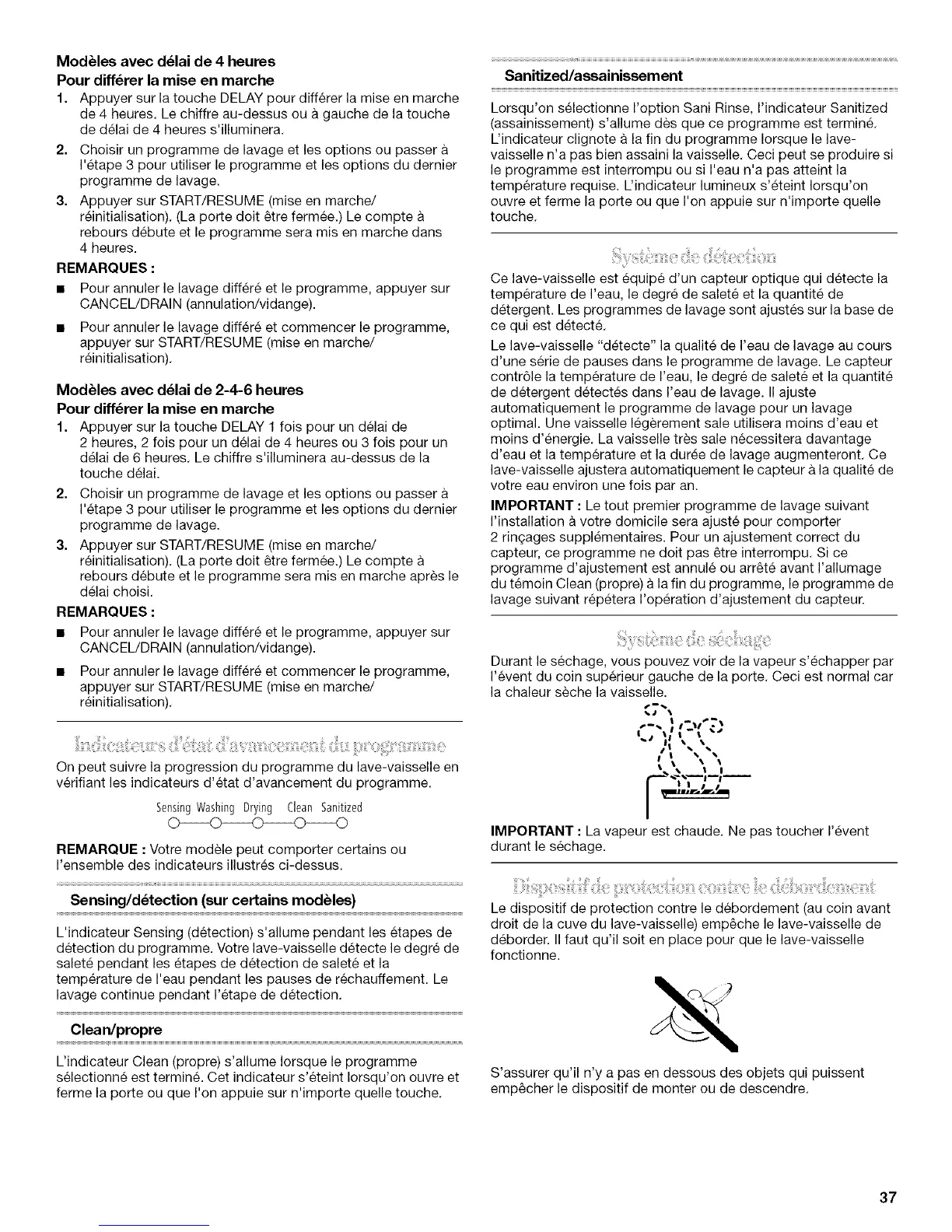 d'une serie de pauses dans le programme de lavage. Le capteur