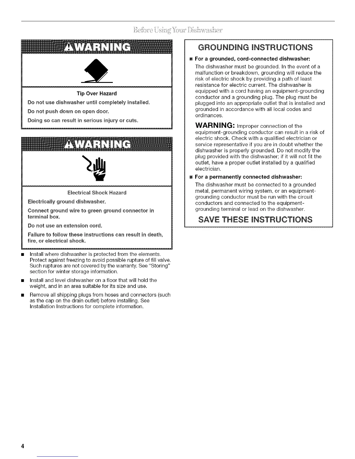 Do not use dishwasher until completely installed,