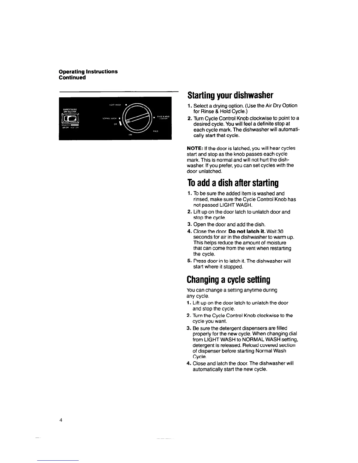 rinsed, make sure the Cycle Control Knob has