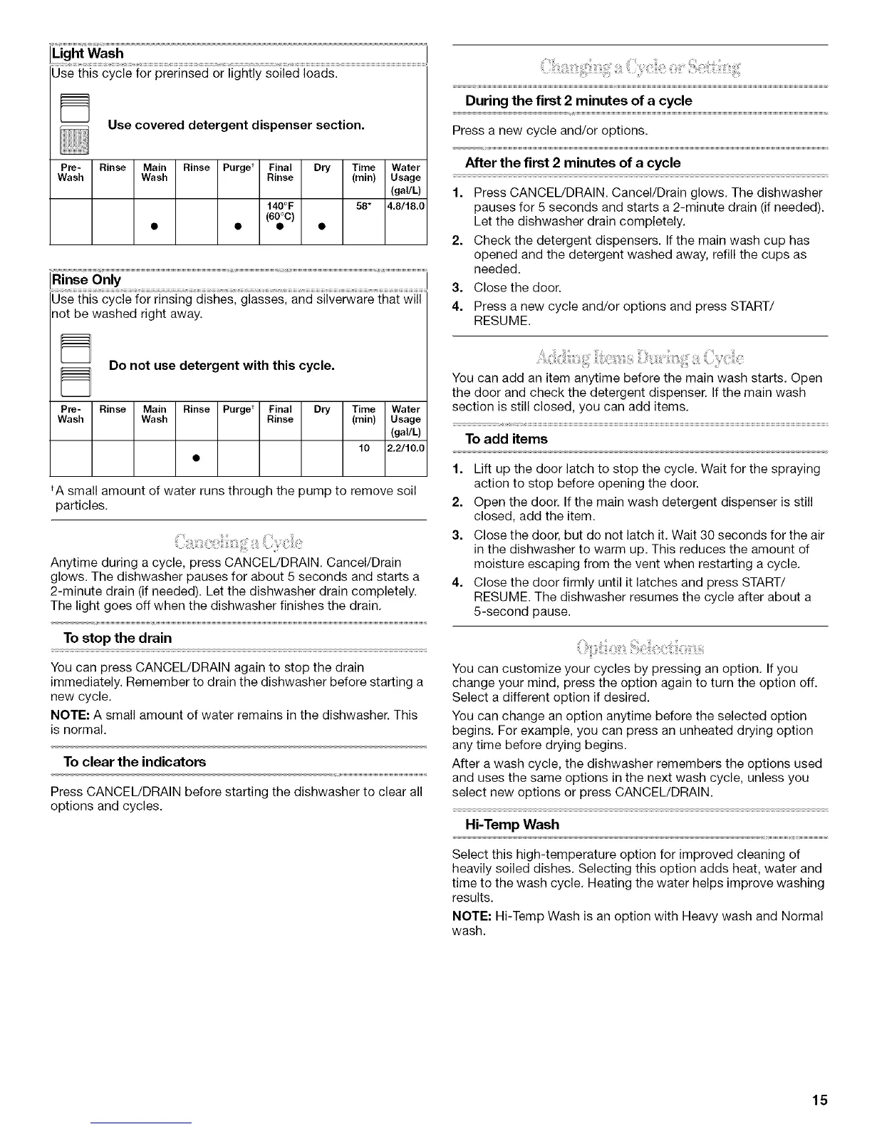 NOTE: Hi-Temp Wash is an option with Heavy wash and Normal