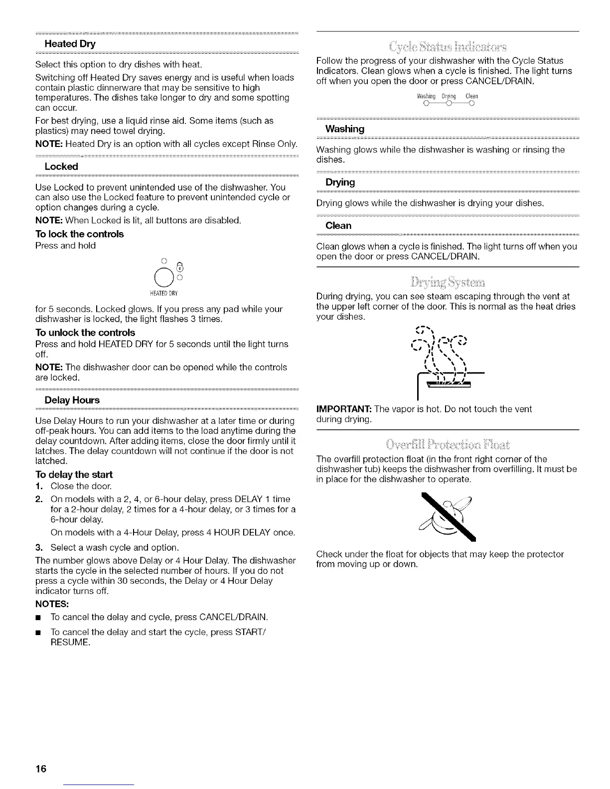 NOTE: Heated Dry is an option with all cycles except Rinse Only.