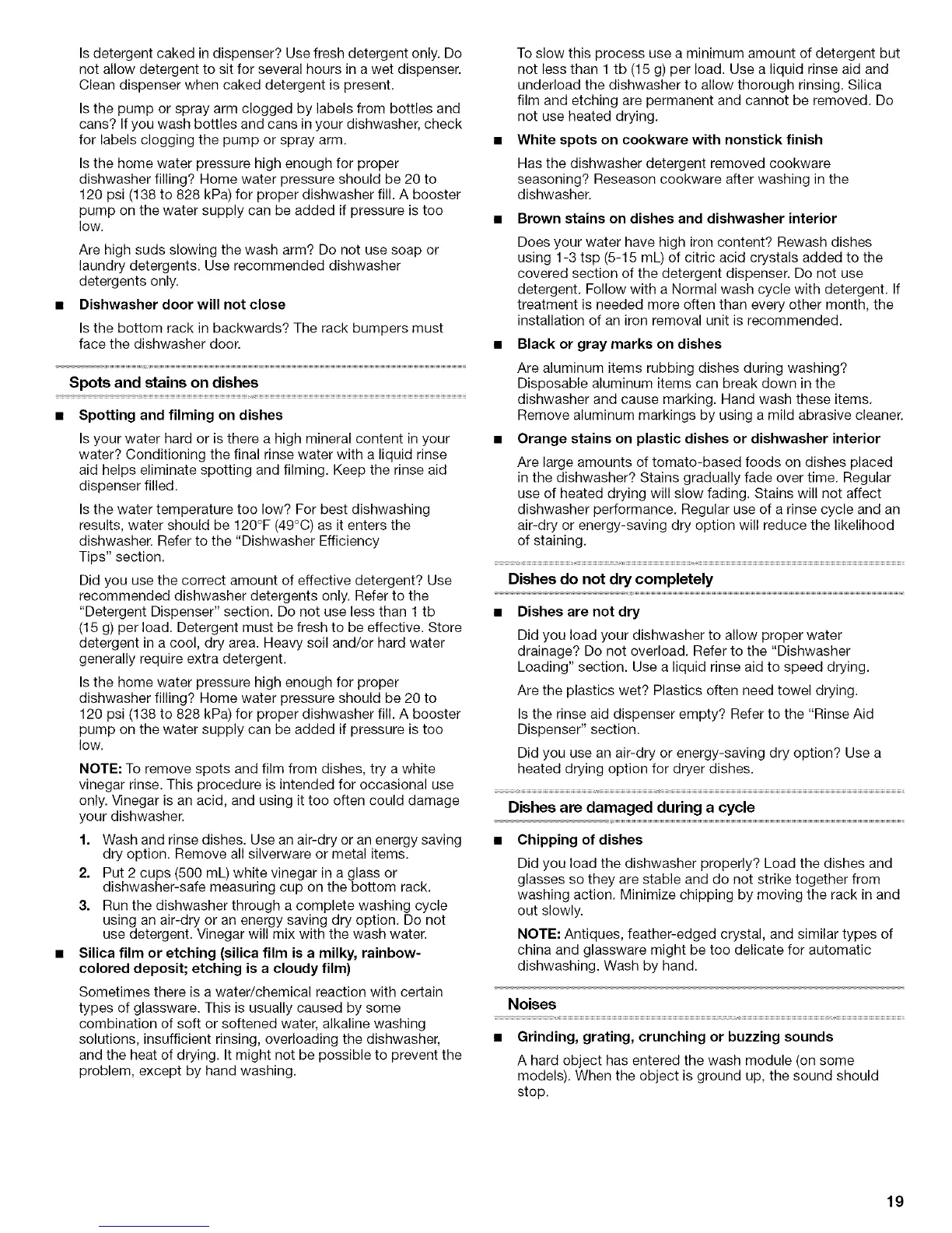 NOTE: To remove spots and film from dishes, try a white