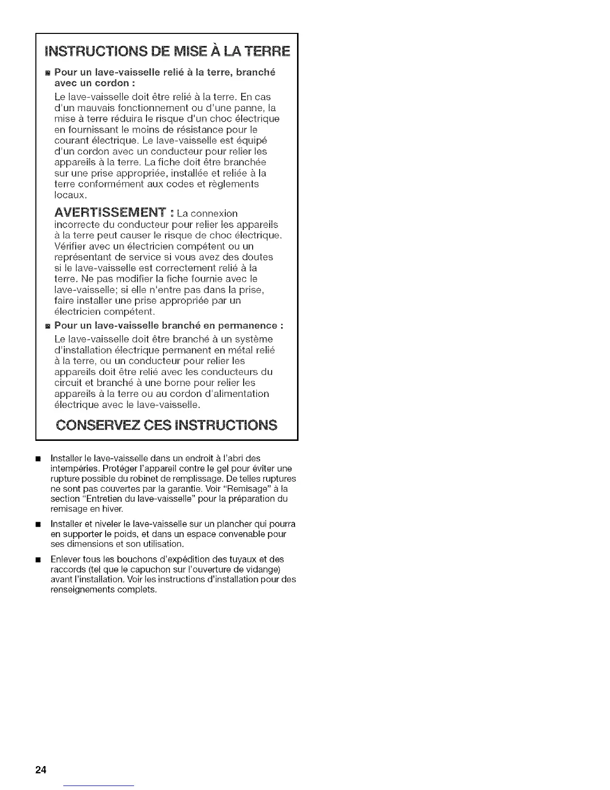 m Pour un lave-vaieselle reli& _ la terre, branch&