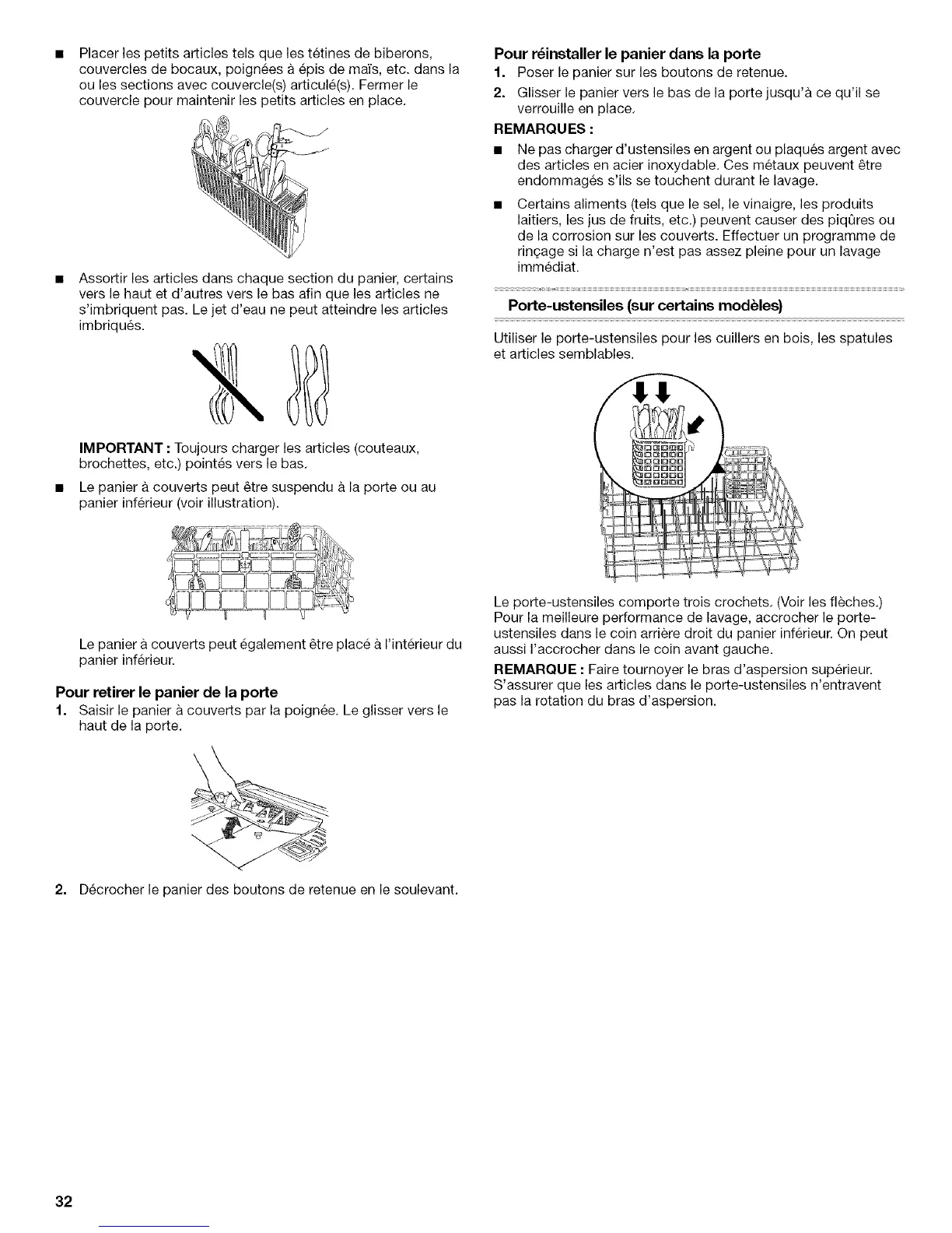 S'assurer que les articles dans le porte-ustensiles n'entravent