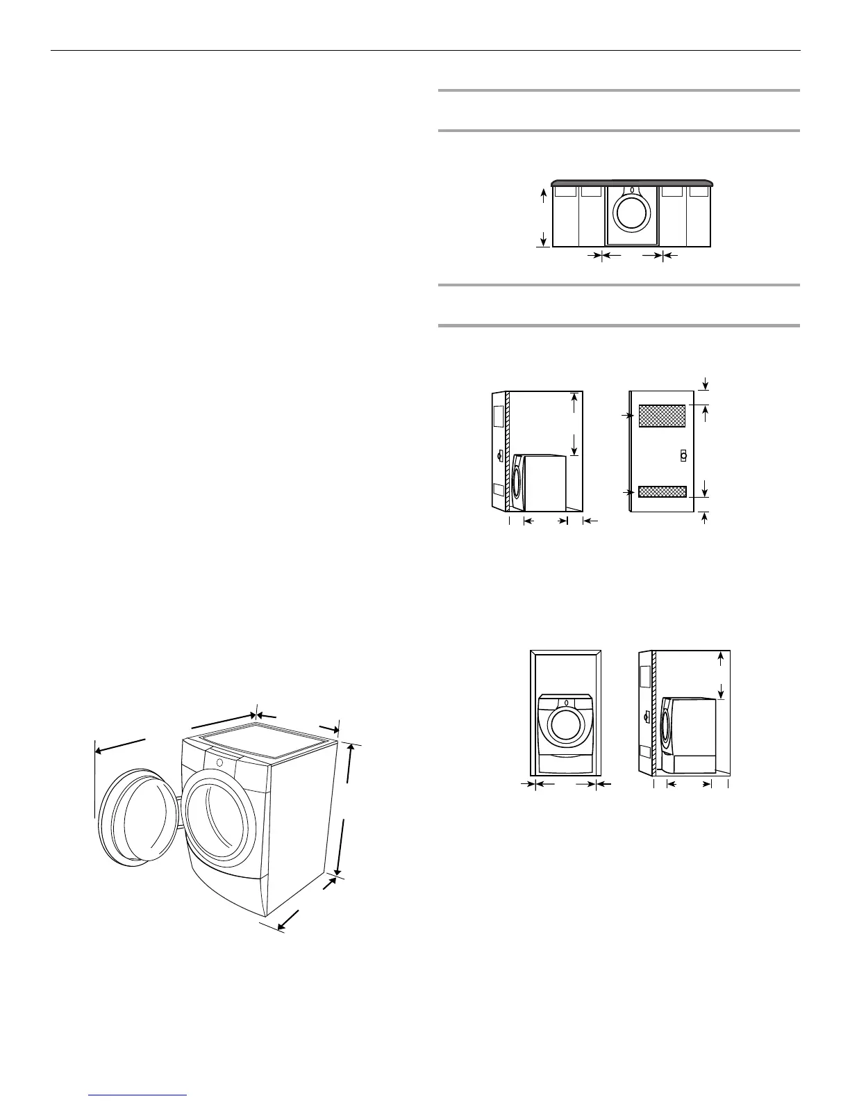 ■ Additional spacing of 1" (2.5 cm) on all sides of the washer is