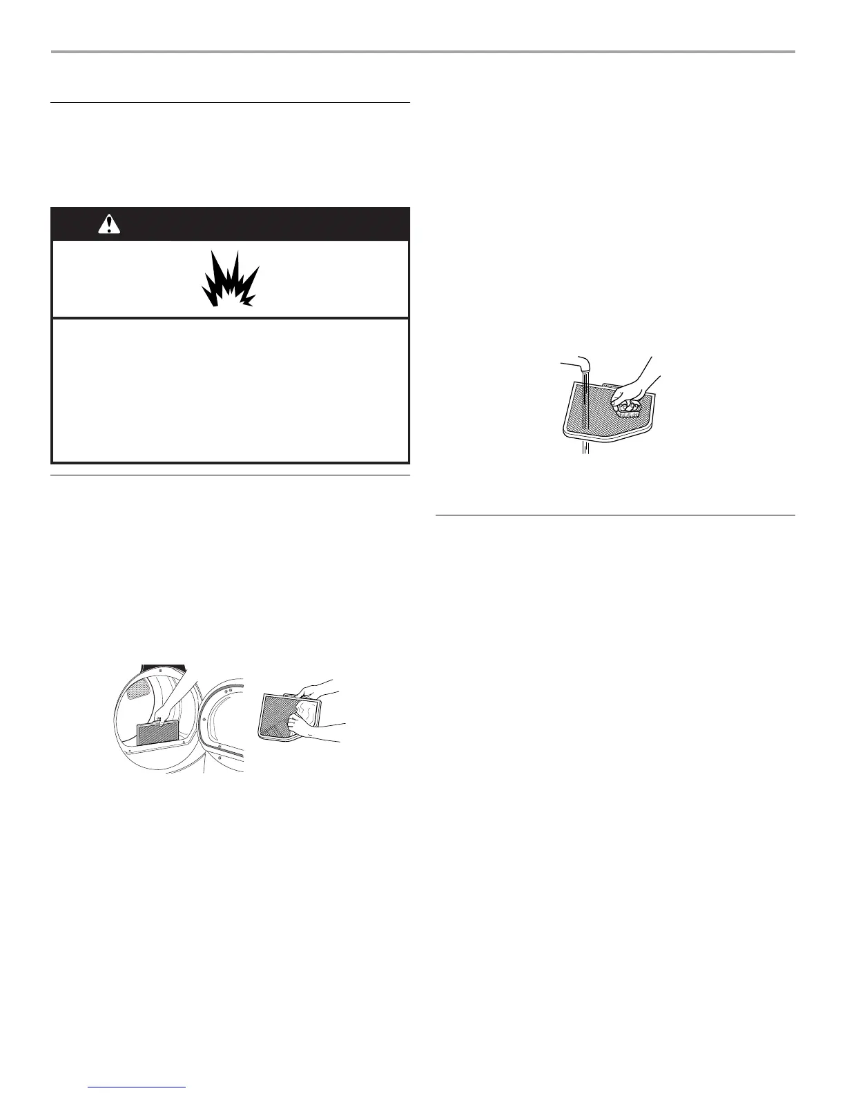 ■ Ne pas faire fonctionner la sécheuse avec un filtre à charpie