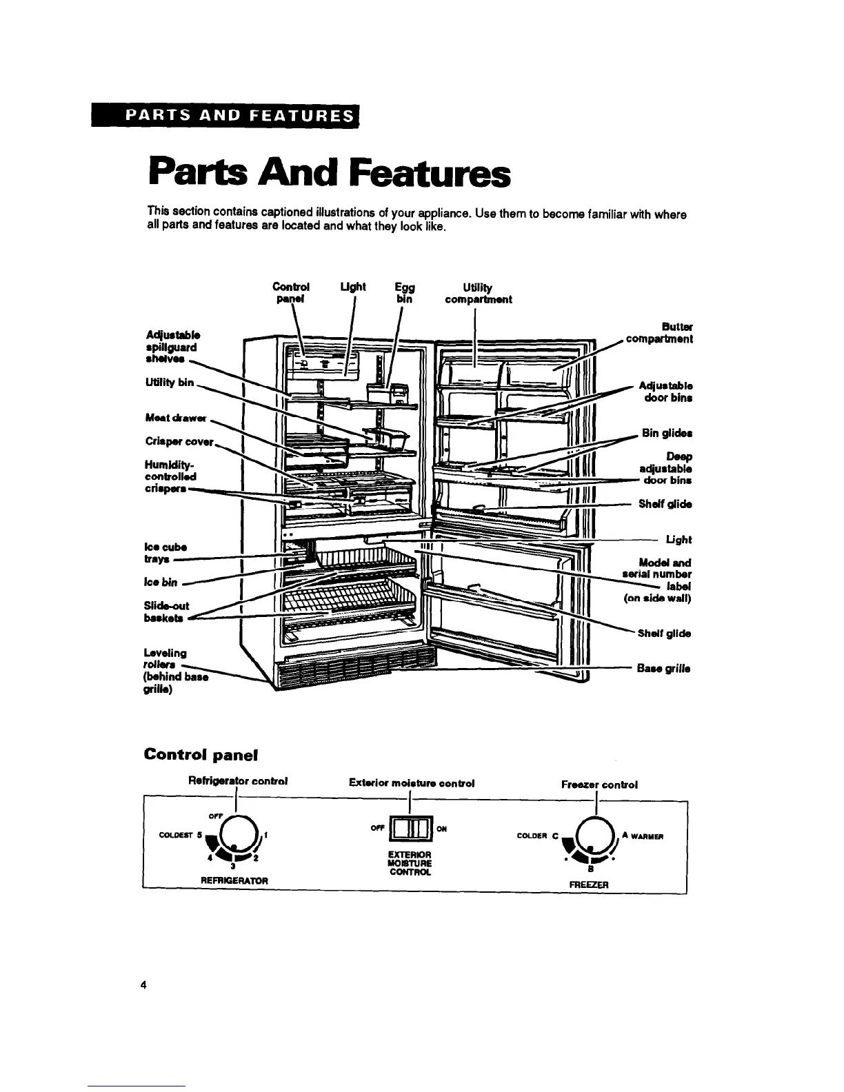 Whirlpool EB21DK - Refrigerator Parts and Features; Control Panel Overview