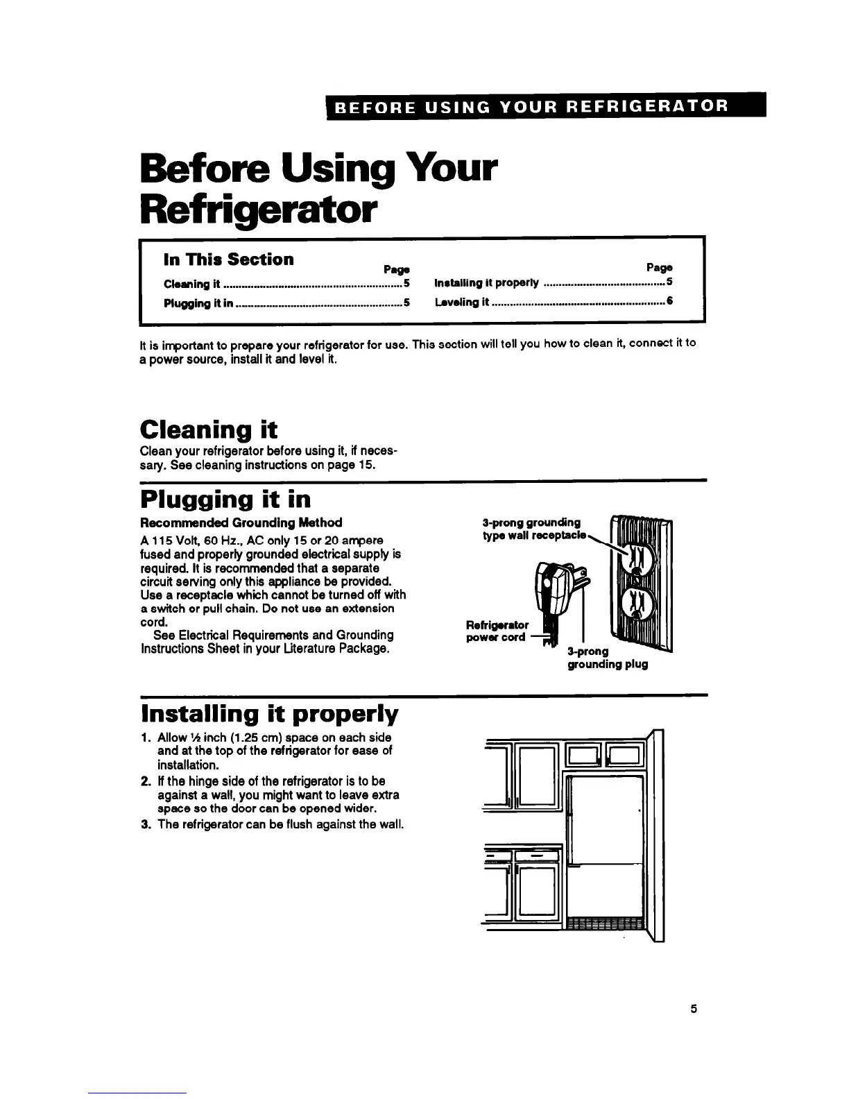 It is important to prepare your refrigerator for use. This section will tell you how to clean it, connect it to
