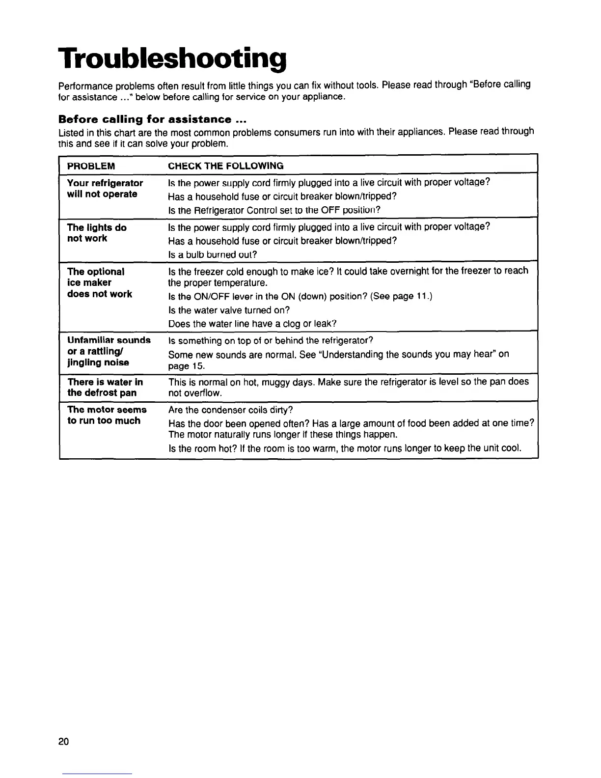 Listed in this chart are the most common problems consumers run into with their appliances. Please read through