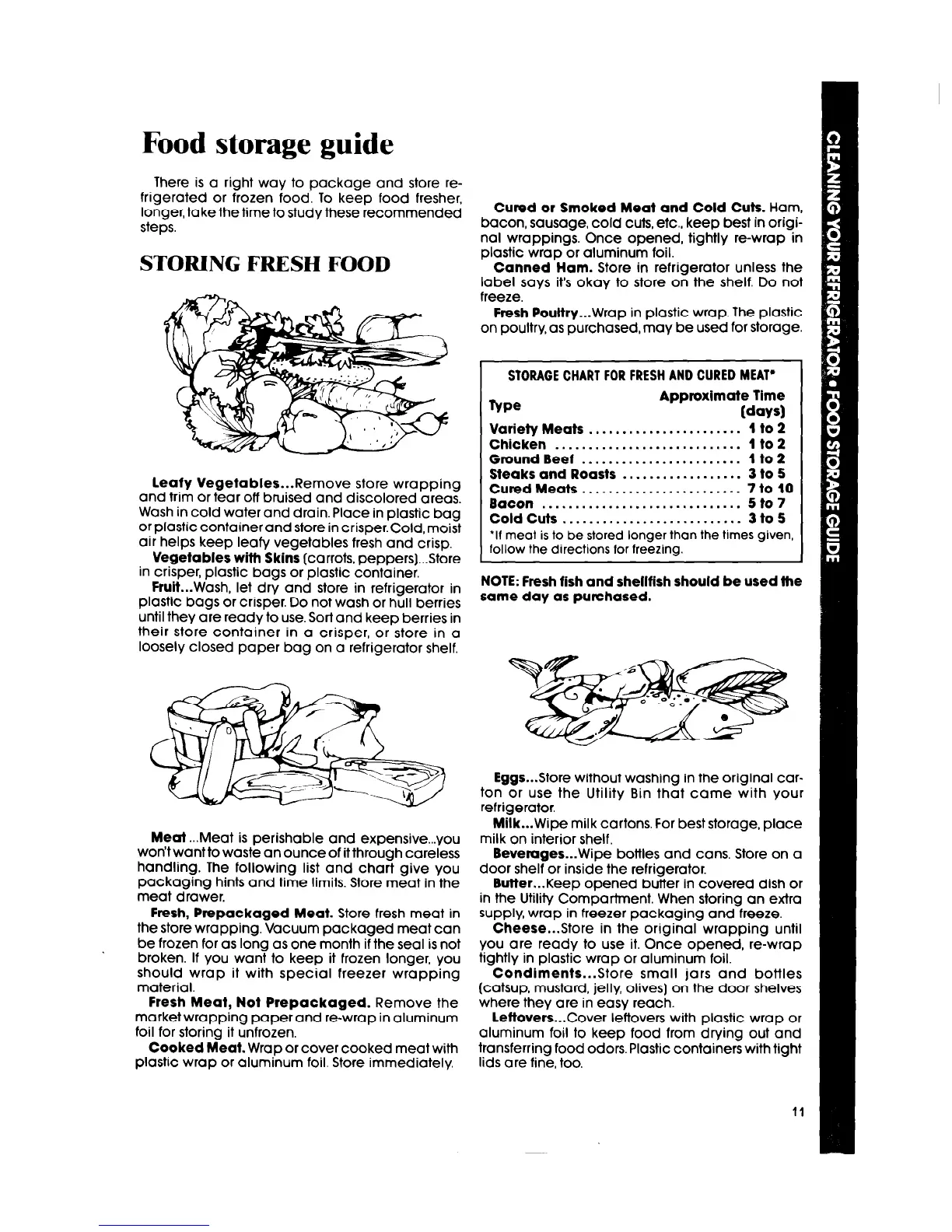 STORAGE CHART FOR FRESH AND CURED MEAT*