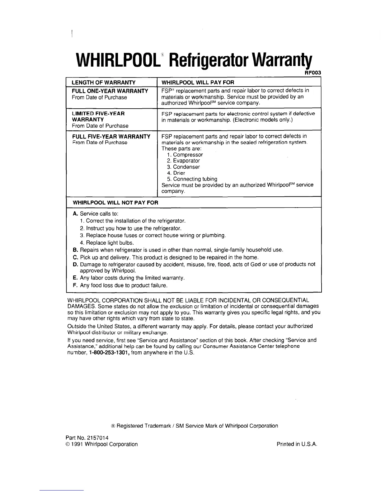 8 Registered Trademark / SM Service Mark of Whirlpool Corporation