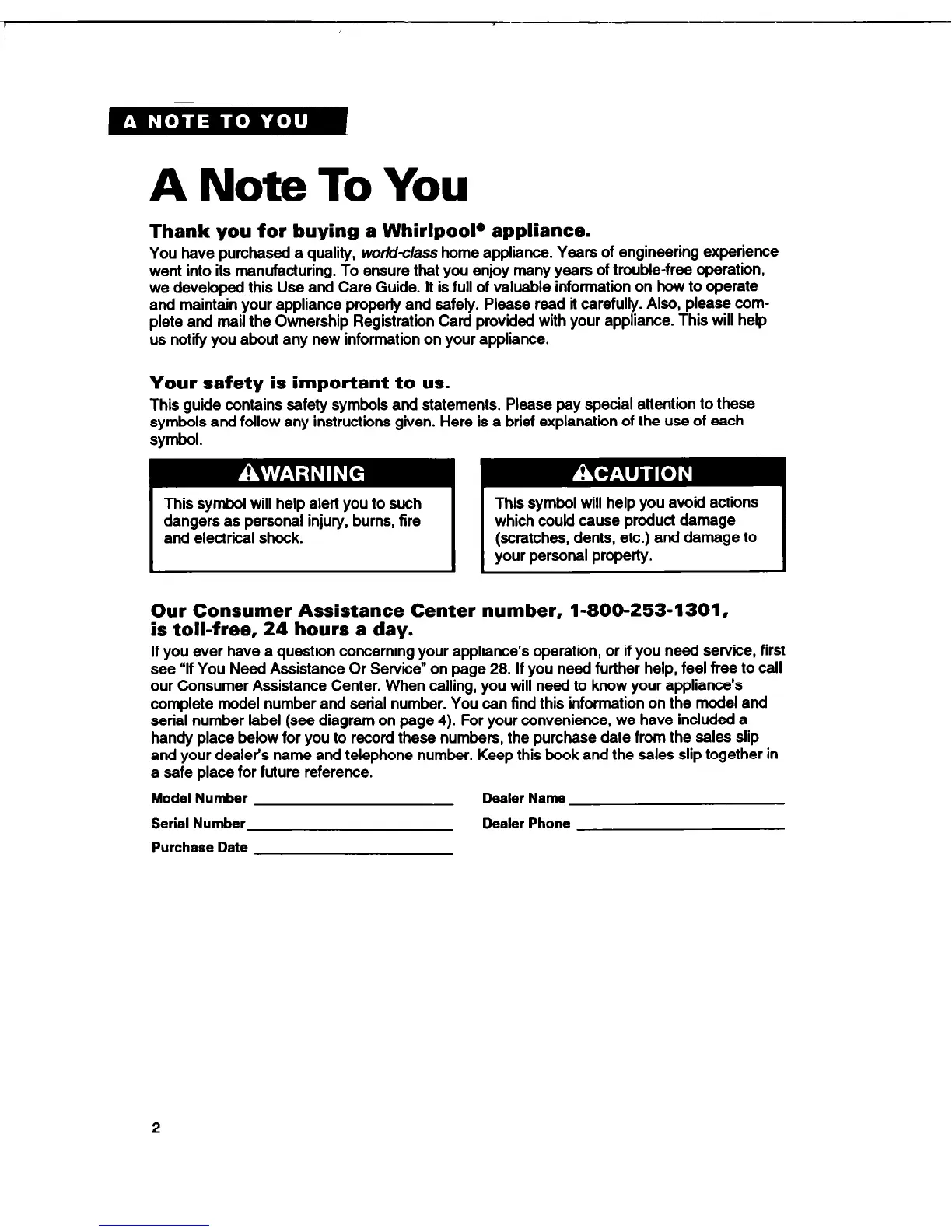 our Consumer Assistance Center. When calling, you will need to know your appliance’s