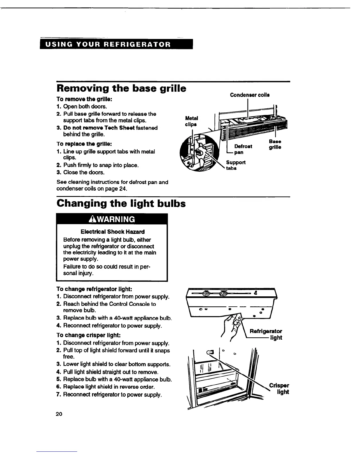 To change refrigerator light: