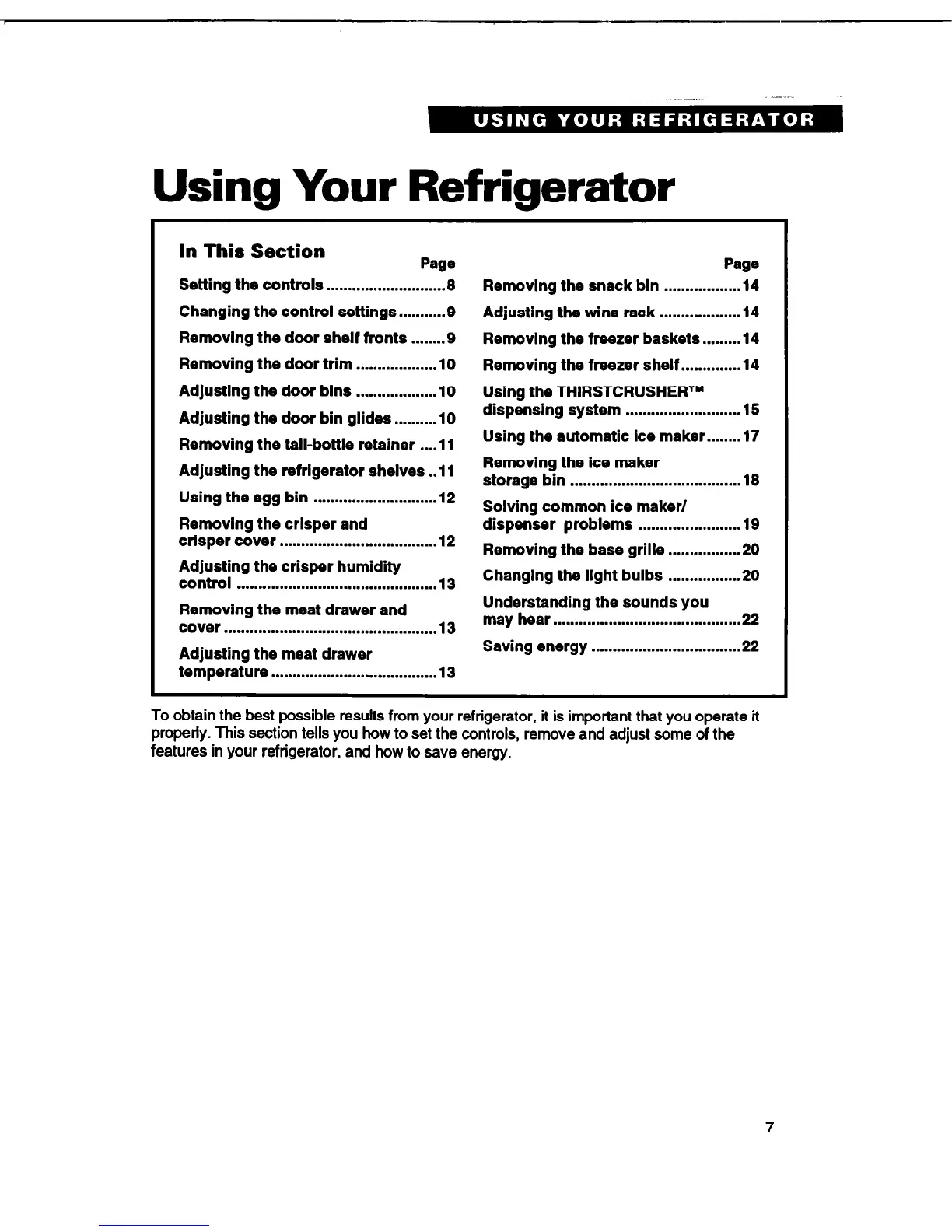 To obtain the best possible results from your refrigerator, it is important that you operate it