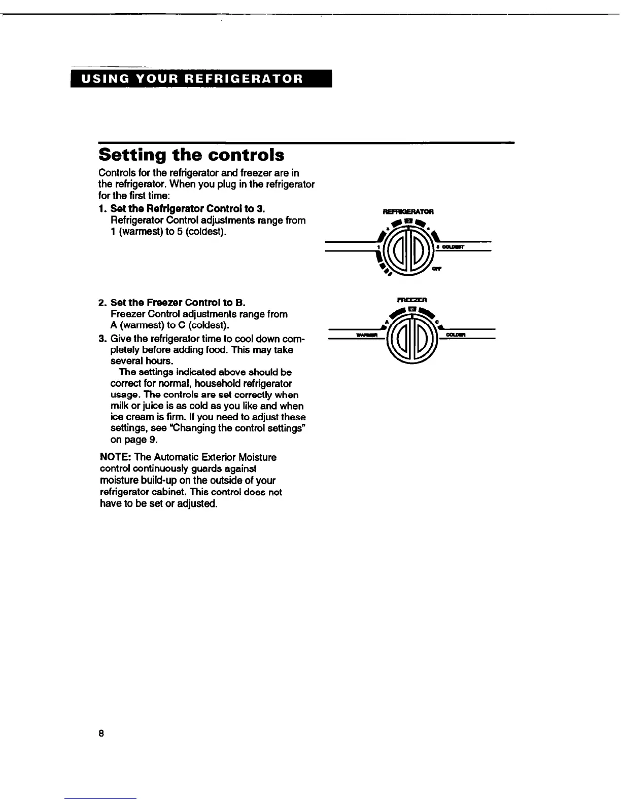 Refrigerator Control adjustments range from