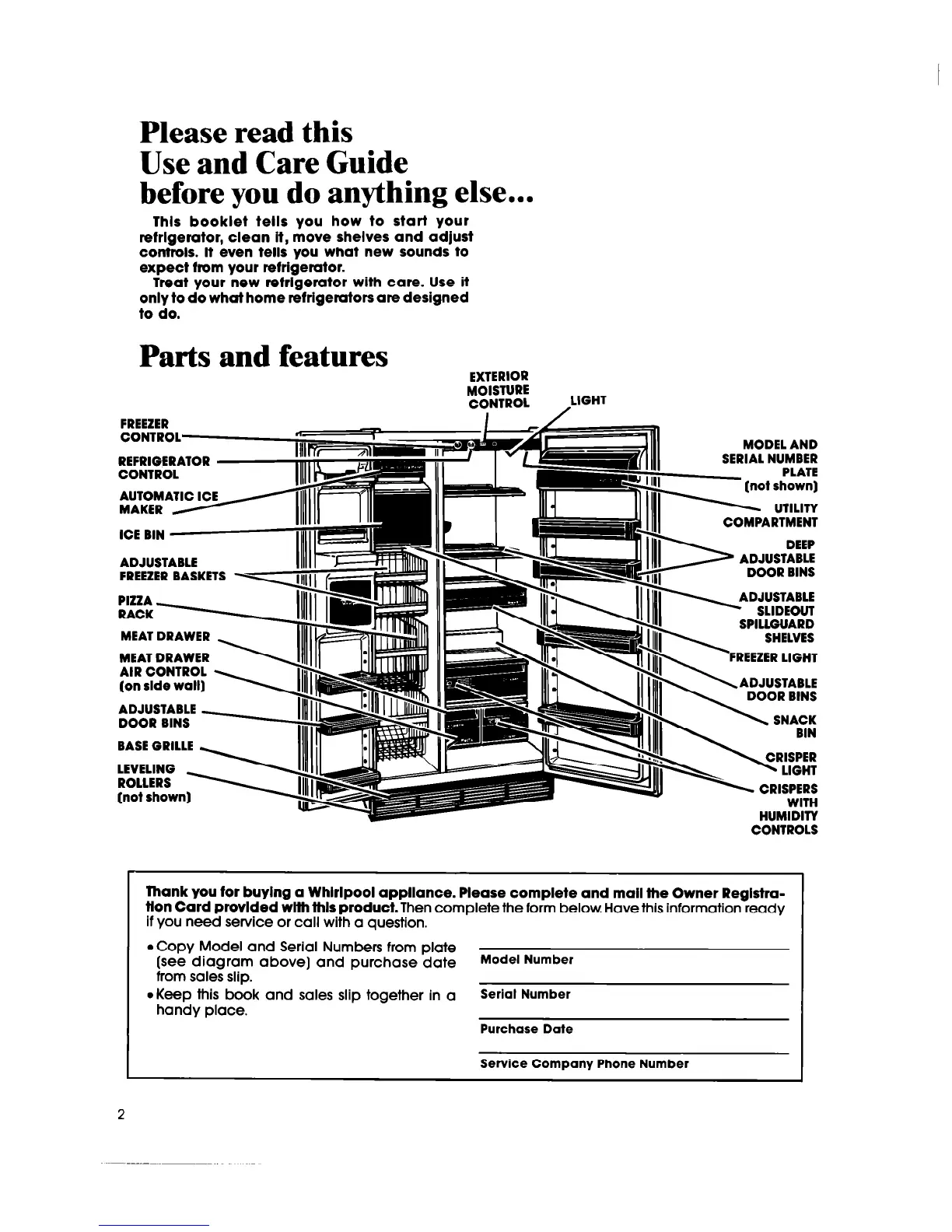 Thank you for buylng a Whlrlpool appliance. Please complete and mall the Owner Reglstra-