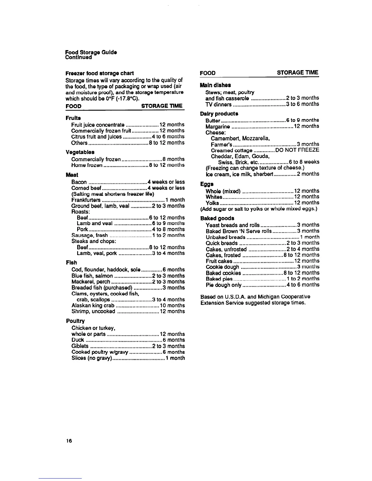 Extension Service suggested storage times.