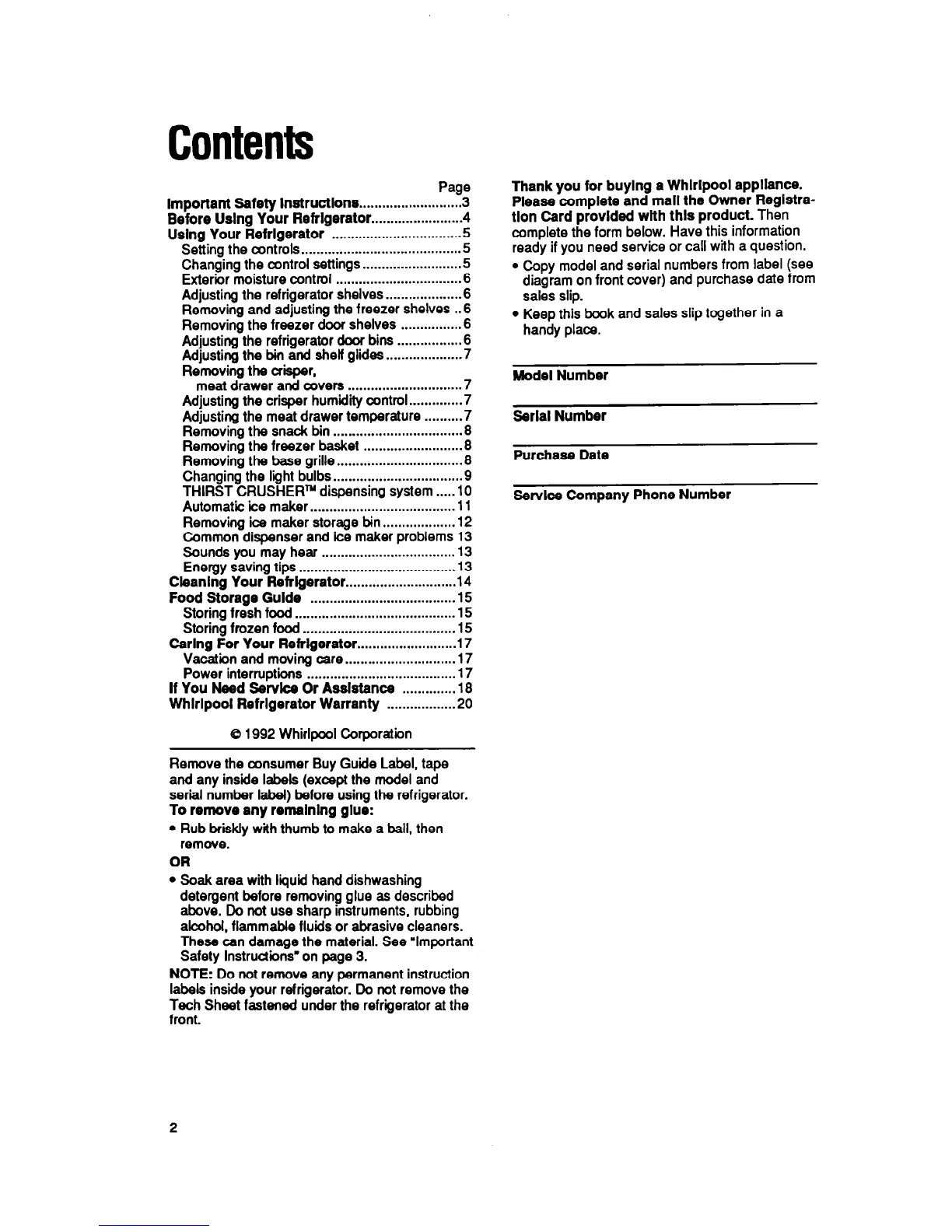 Thank you for buylng a Whlrlpool appliance.