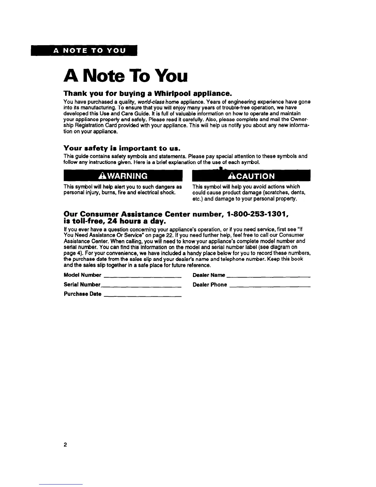Thank you for buying a Whirlpool appliance.
