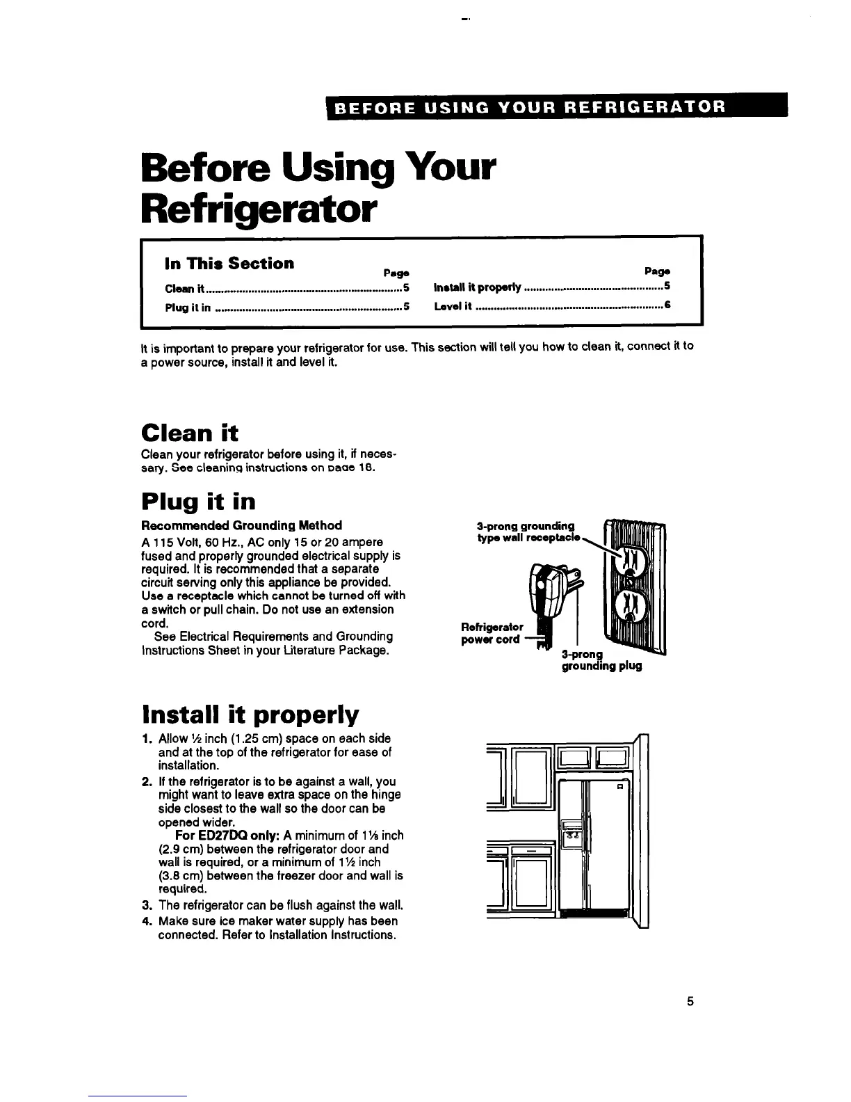 It is important to prepare your refrigerator for use. This section will tell you how to clean it, connect it