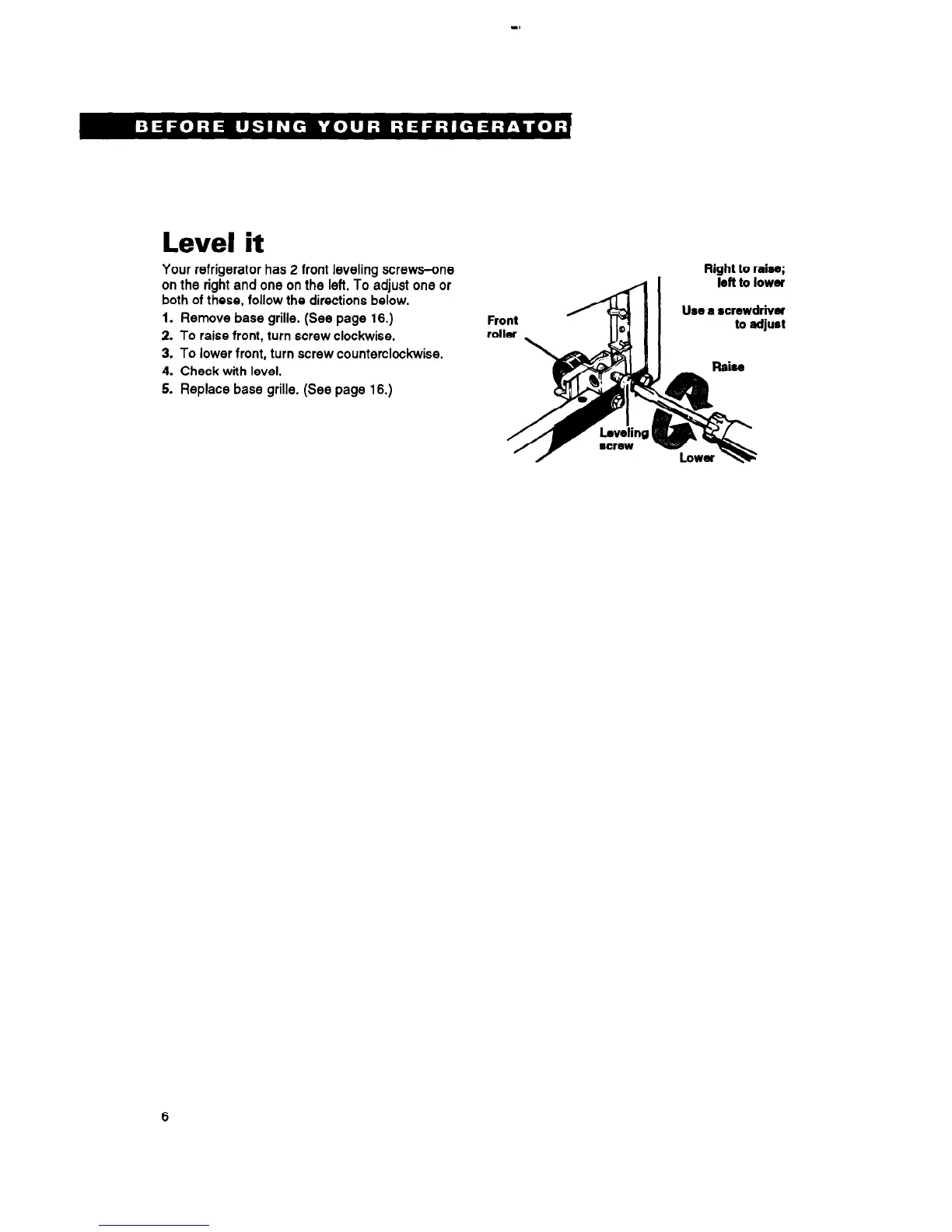 Your refrigerator has 2 front leveling screws-one