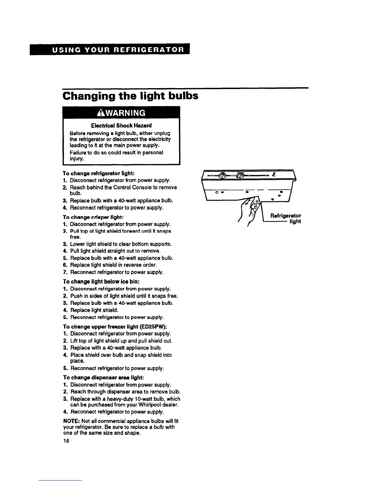 your refrigerator. Be sure to replace a bulb with