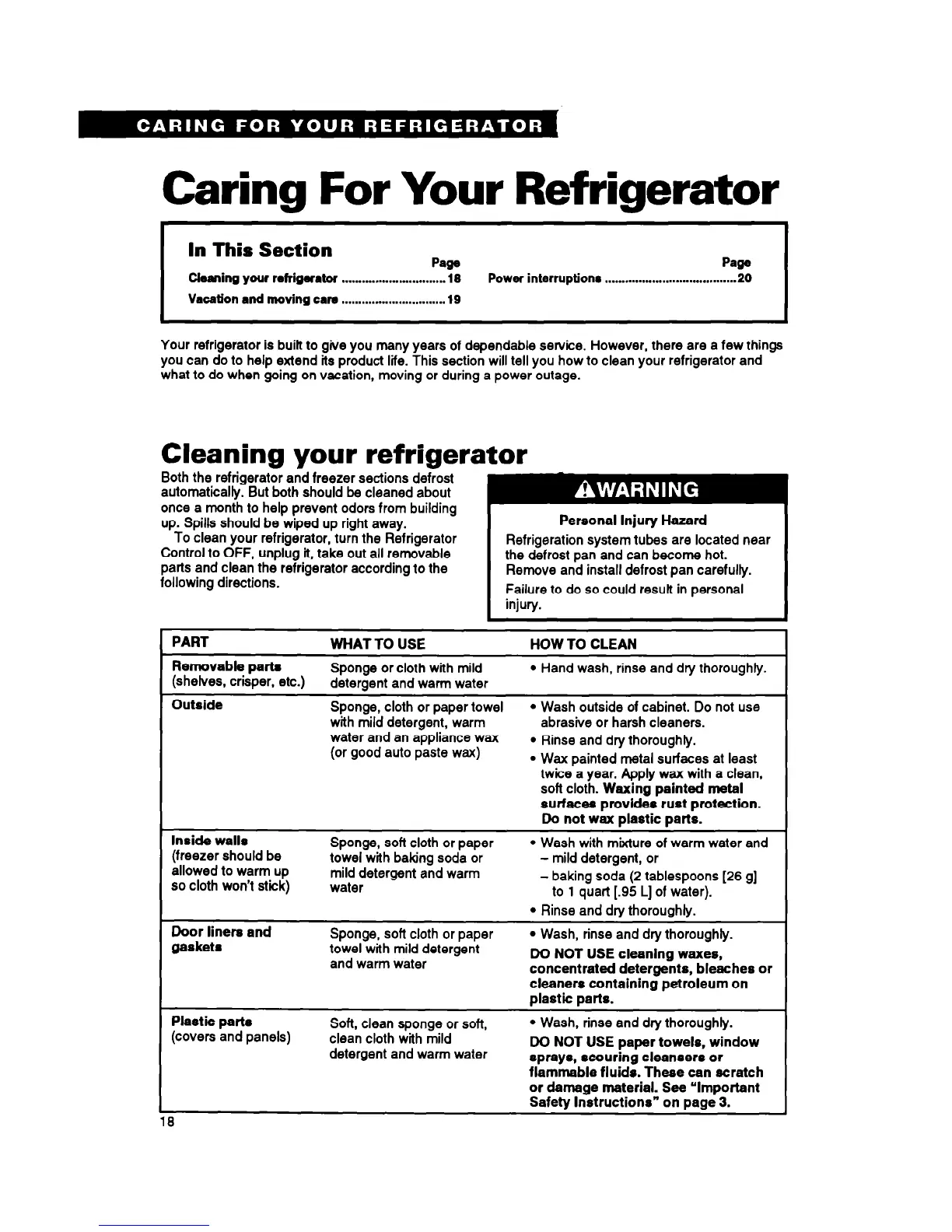 you can do to help extend its product life. This section will tell you how to clean your refrigerator and