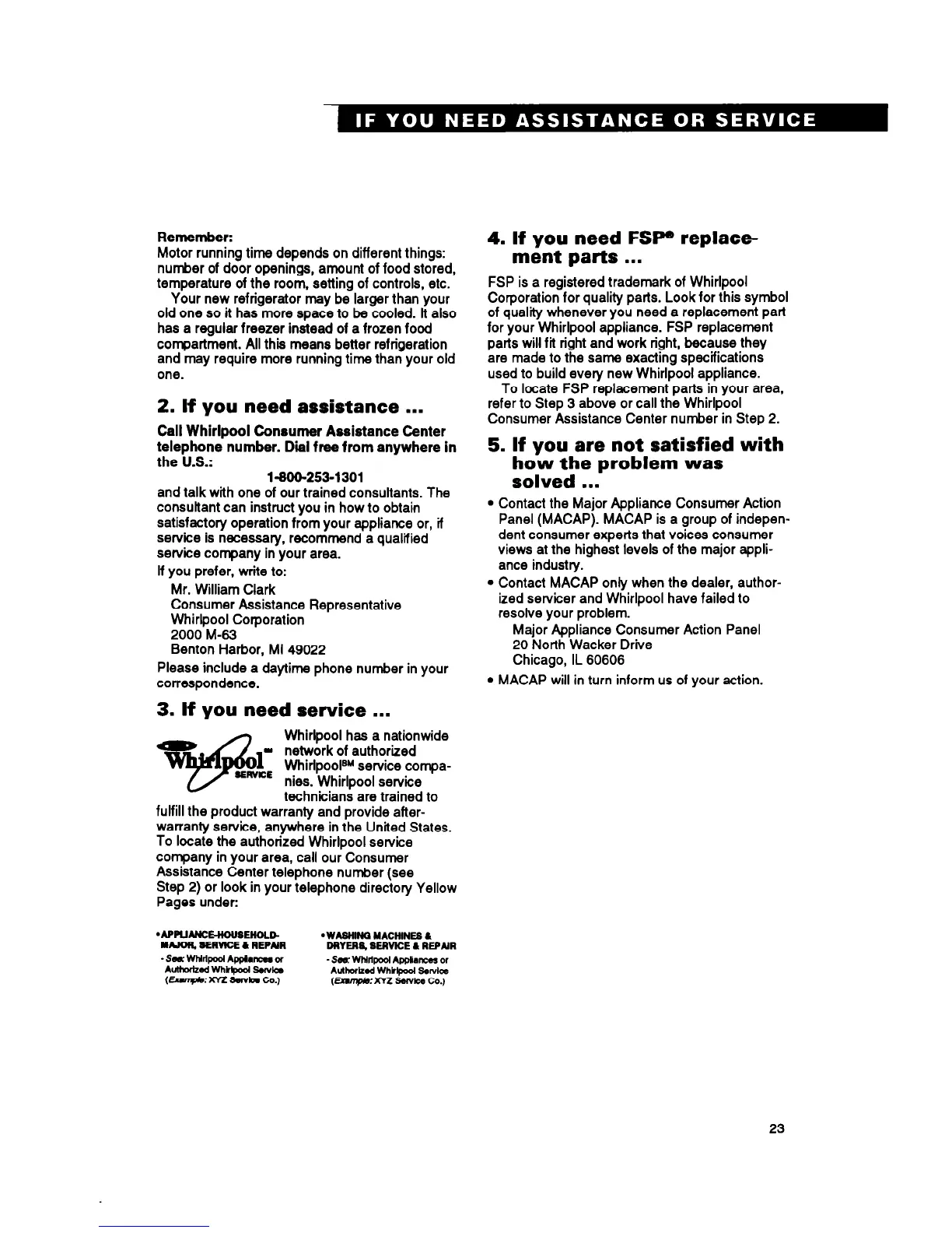 Call Whirlpool Consumer Assistance Center