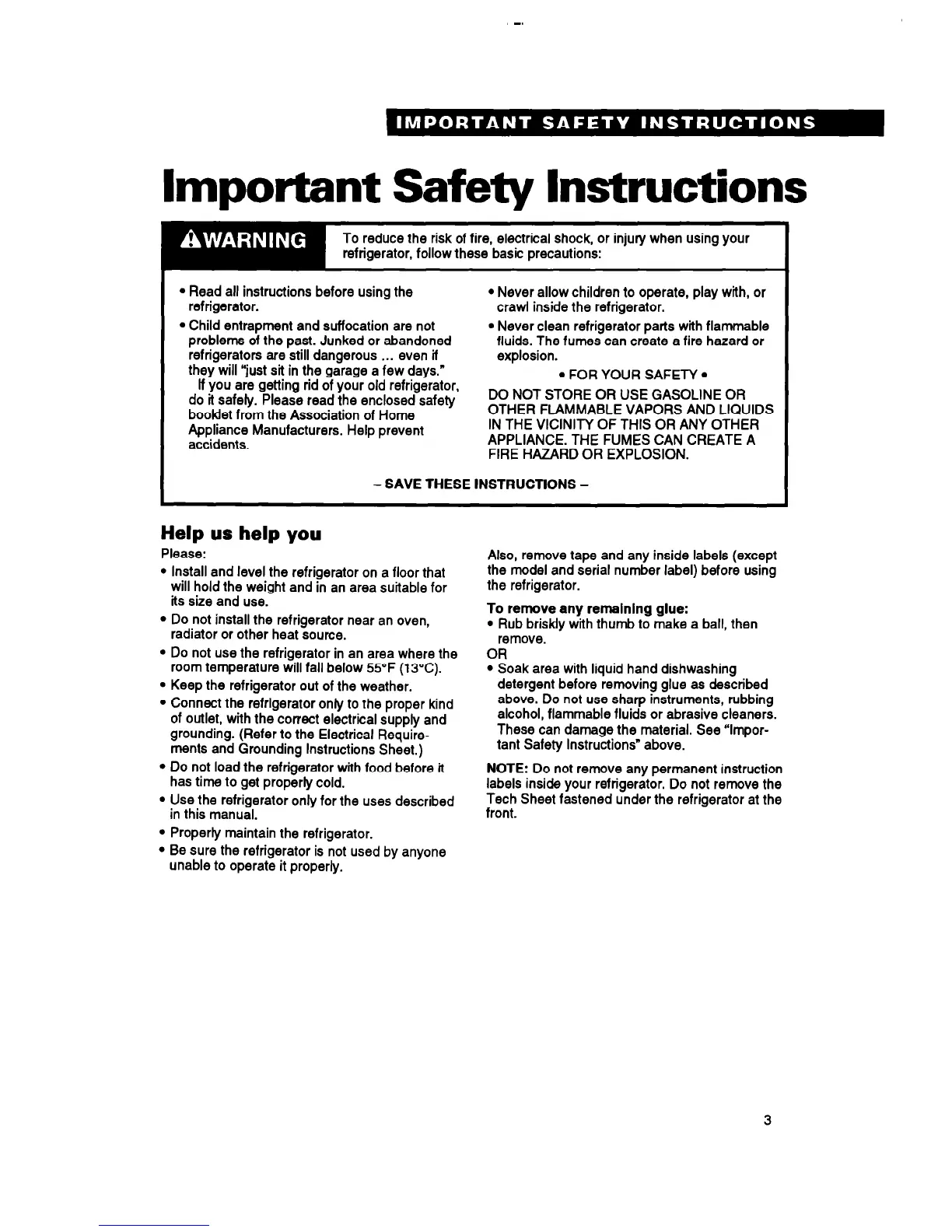 labels inside your refrigerator. Do not remove the