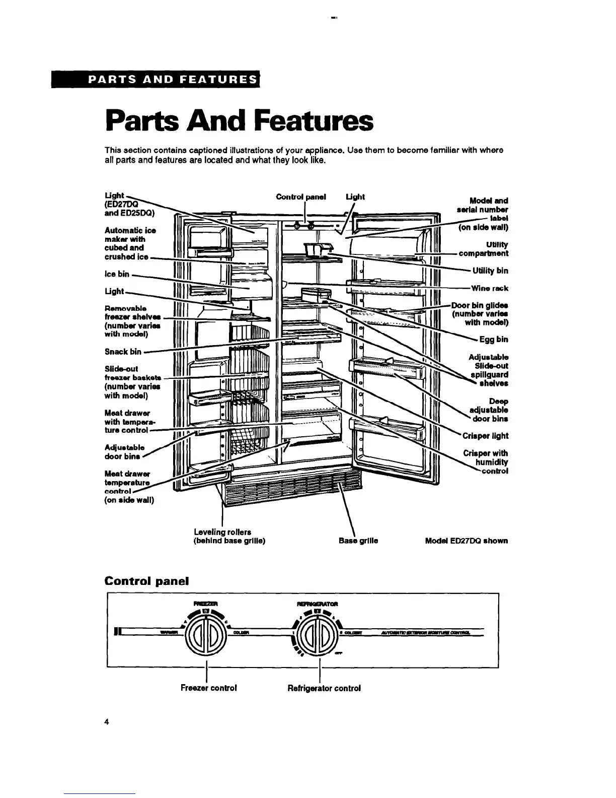 Whirlpool ED27DQ - Parts And Features; Control Panel Overview