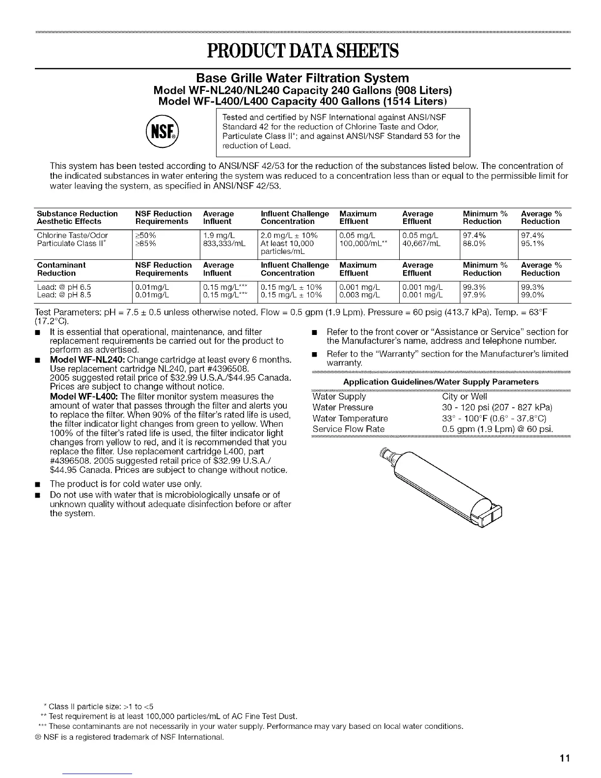 Tested and certified by NSF International against ANSI/NSF