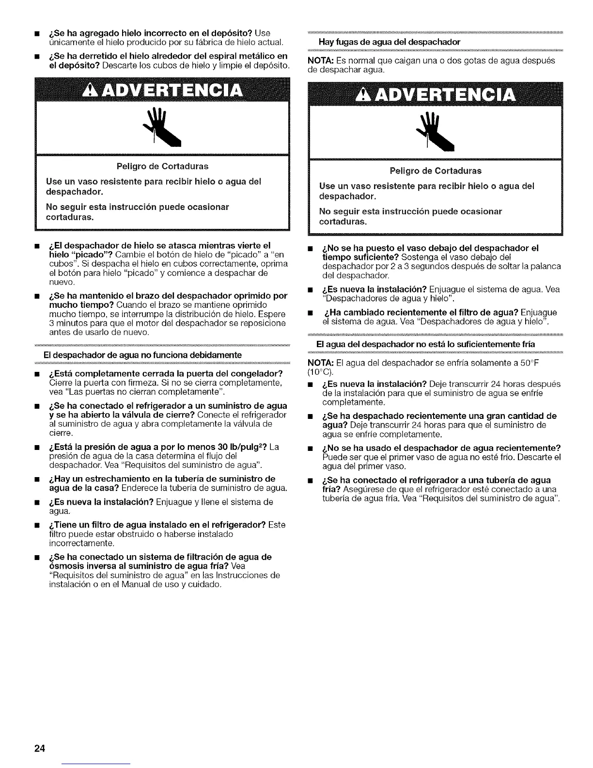 • &No se ha usado el despachador de agua recientemente?