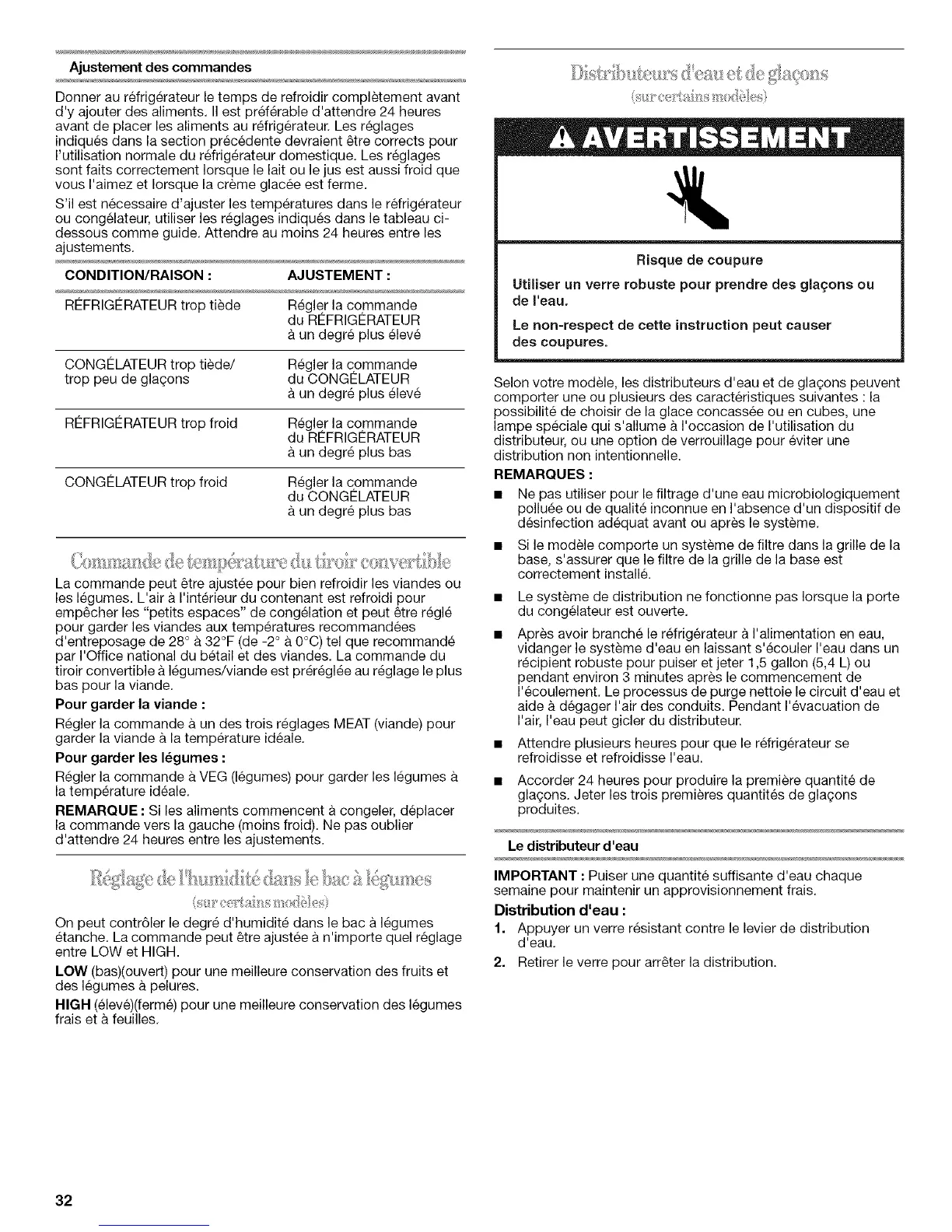 Selon votre modele, les distributeurs d'eau et de glagons peuvent