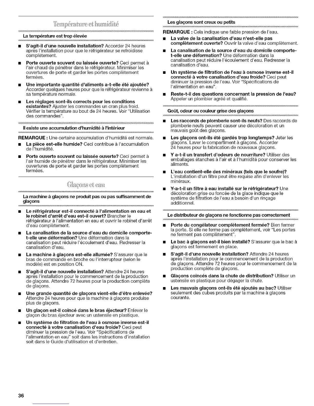 • Le bac a gla_ons est-il bien installS? S'assurer que ie bac