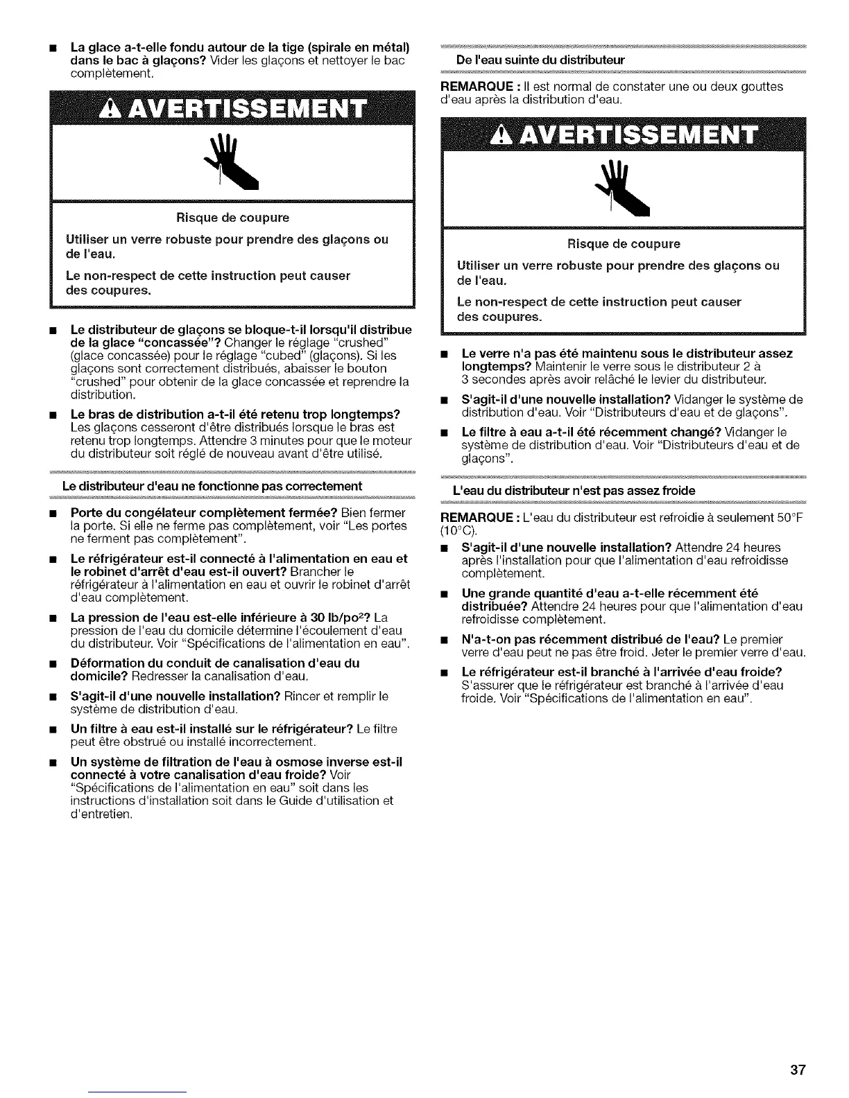 dans le bac a gla£ons? Vider les gla_ons et nettoyer le bac