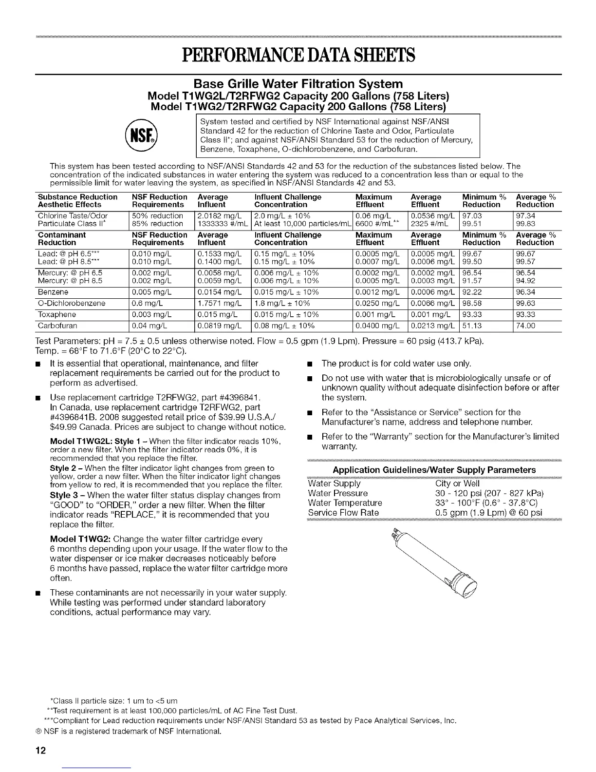Model TlWG2L: Style 1 - When the filter indicator reads 10%,