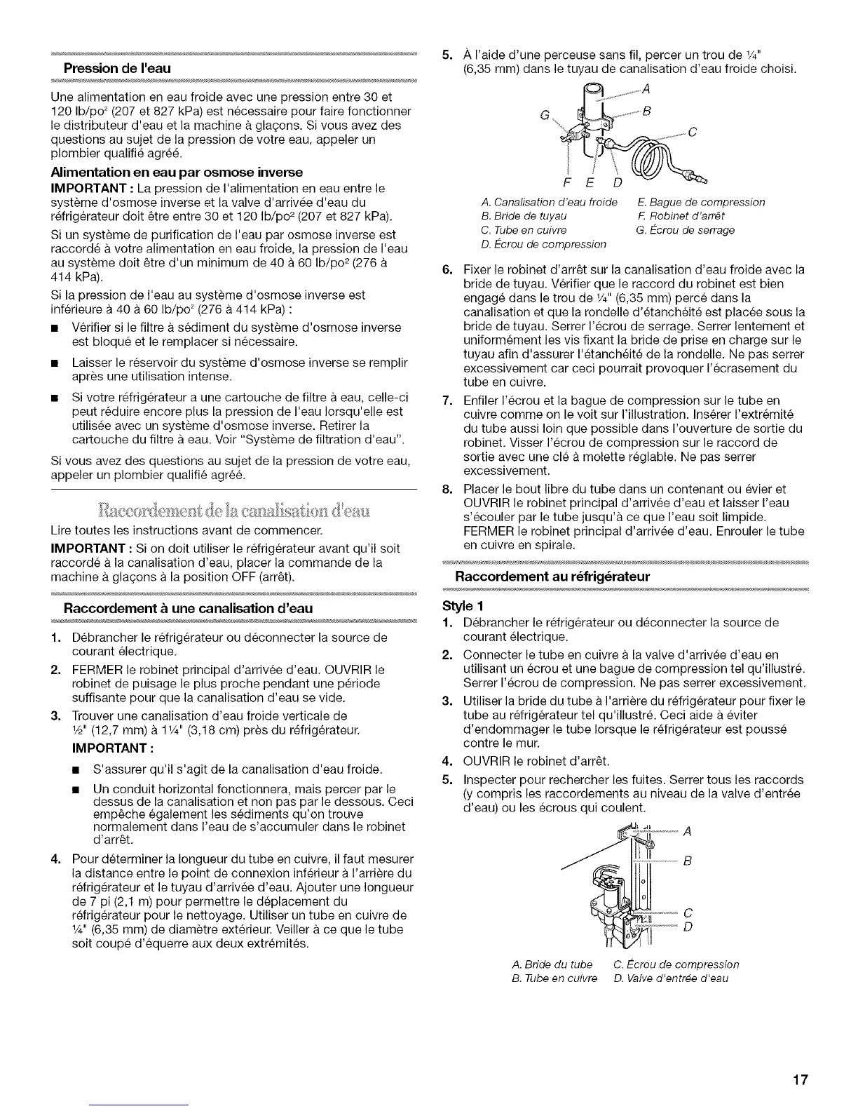 B. Tube en cuivre D. Valve d'entr_e d'eau
