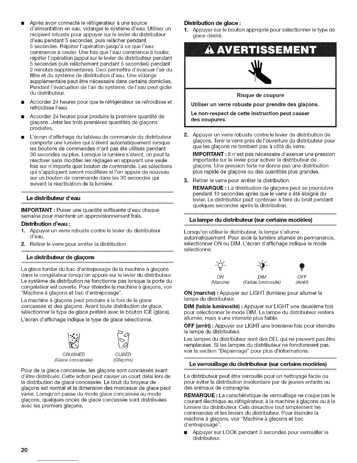 dans le congelateur Iorsqu'on appuie sur le levier du distributeur.