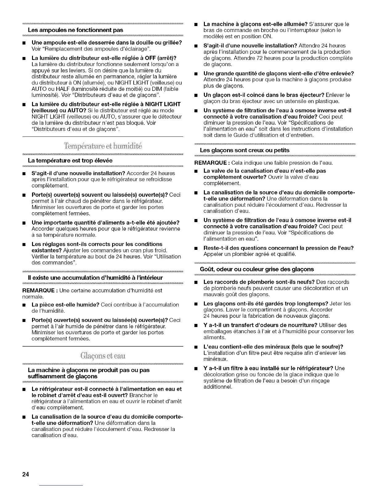 REMARQUE : Une certaine accumulation d'humidite est