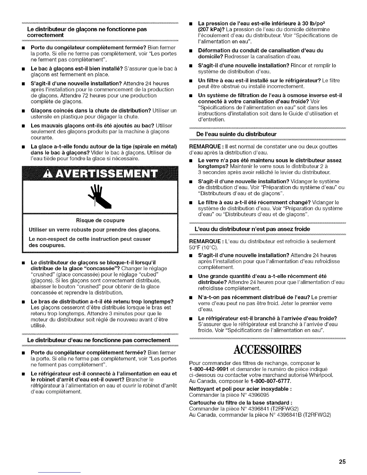 ci-dessous ou contacter votre marchand autorise Whirlpool.