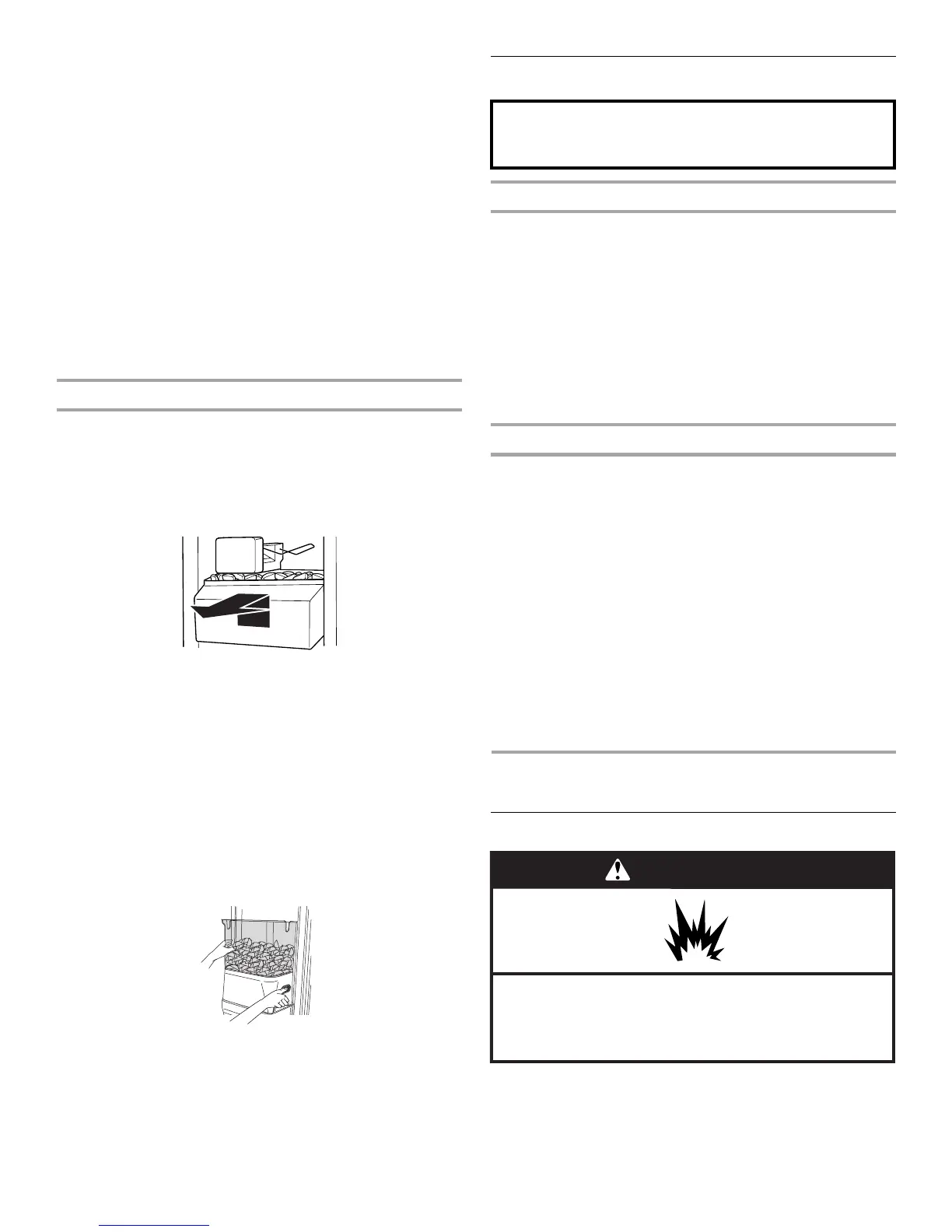 bin. This can cause damage to the ice container and the